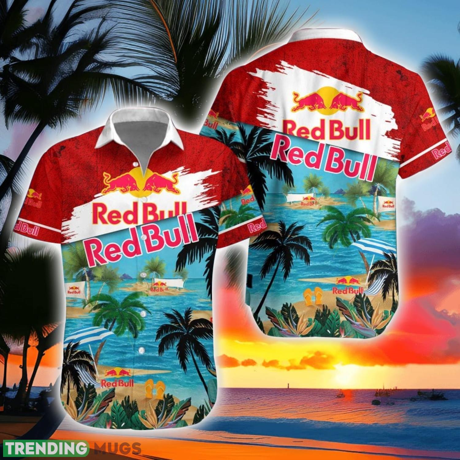 Red Bull Beach Coconut Pattern Aloha Hawaiian Shirt And Shorts Details: