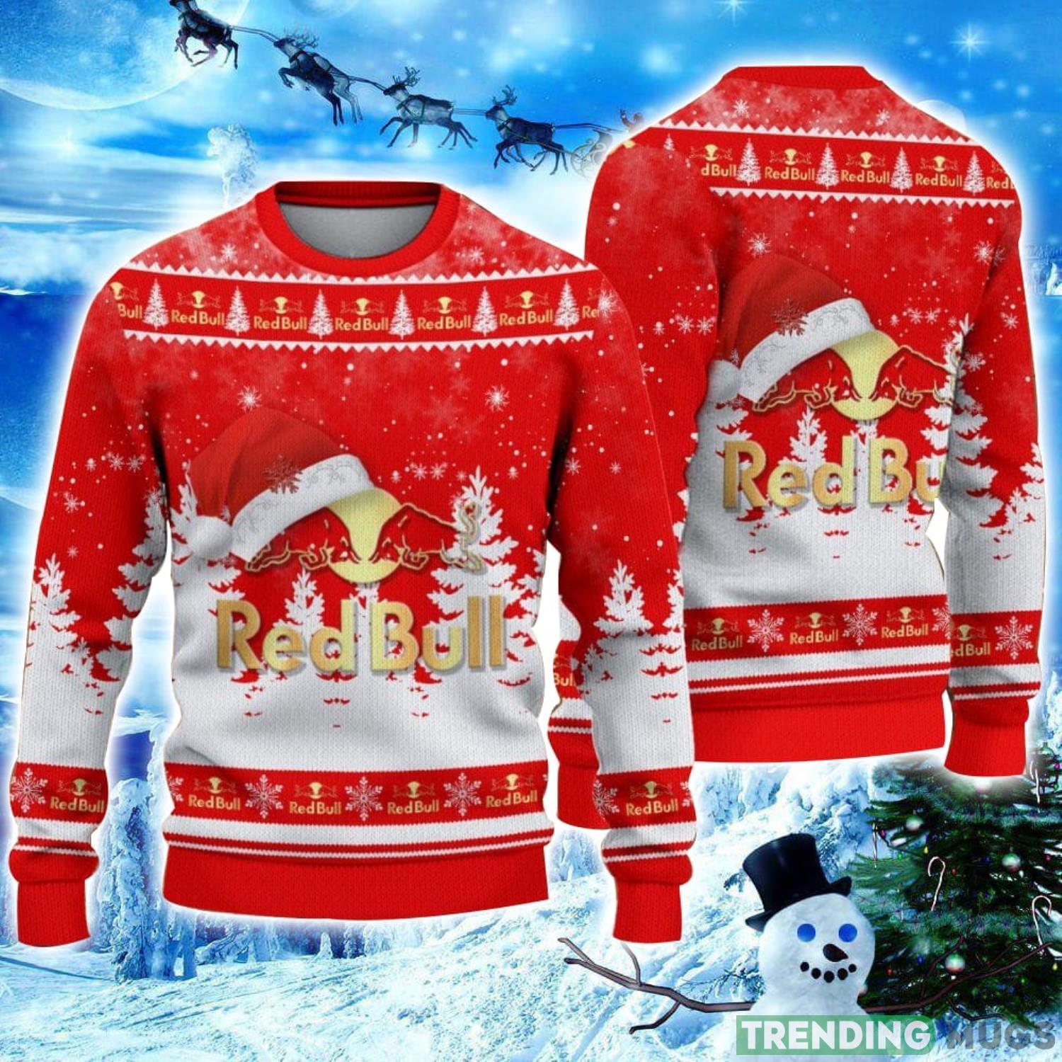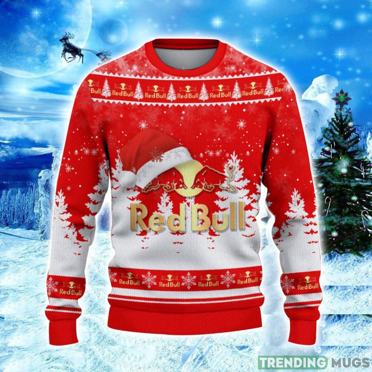 Red Bull Logo Wearing Santa Hat Christmas Gift Ugly Christmas Sweater Christmas Gift Ideas Informations: