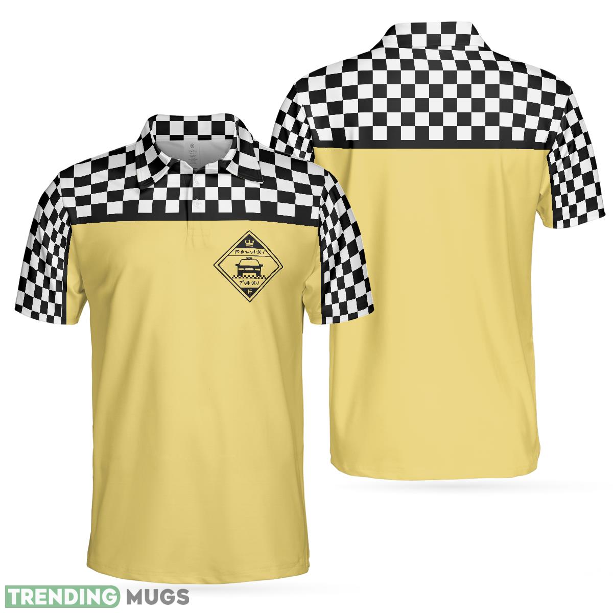 Relaxi Taxi Short Sleeve, Black And White Checker Pattern Yellow Taxi Shirt Polo Shirt Information: