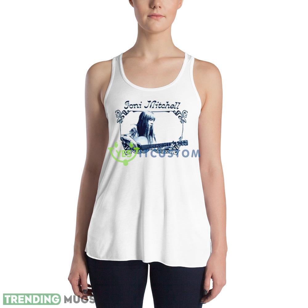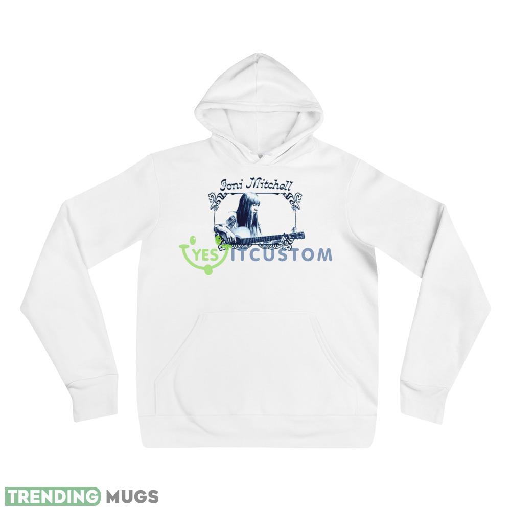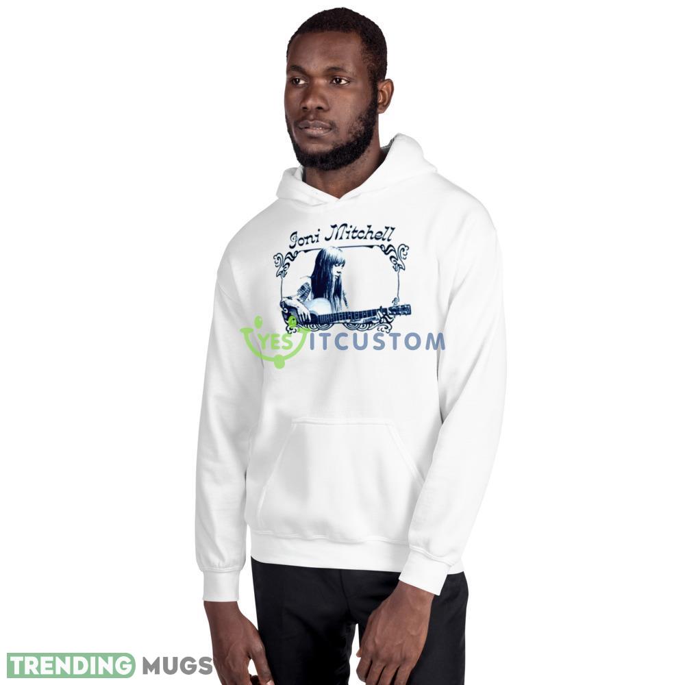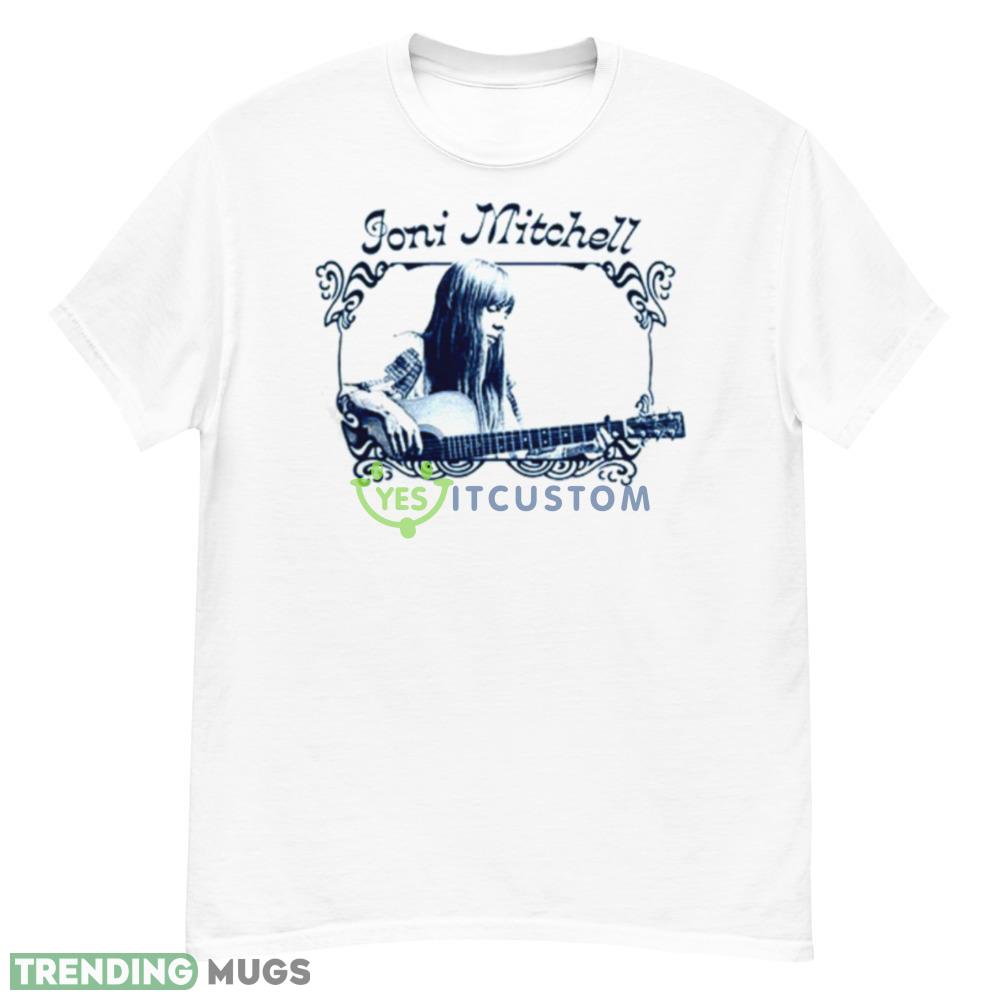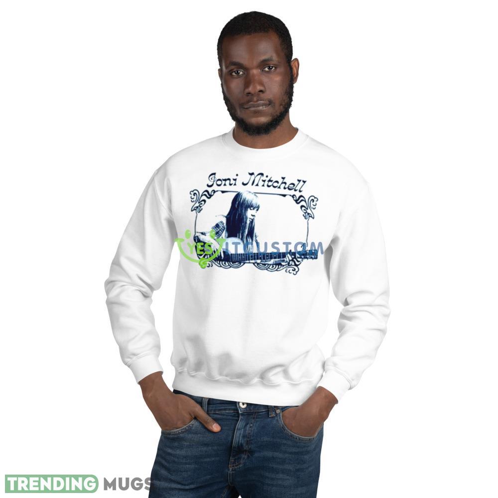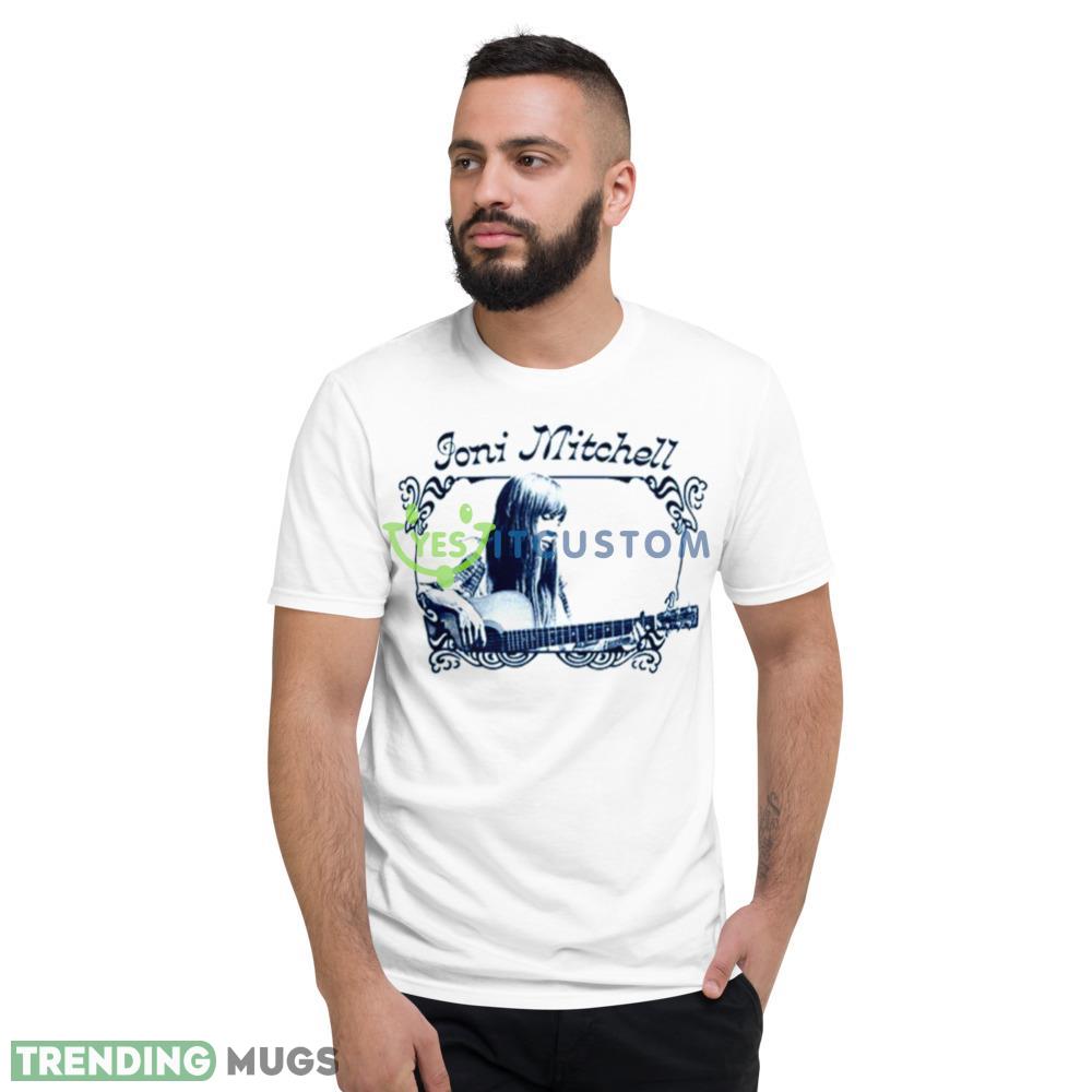 The Joni Mitchell graphic on the front of the shirt is bold and eye-catching, featuring a striking black and white portrait of the legendary artist. This unique design is sure to turn heads and become a conversation starter wherever you go.