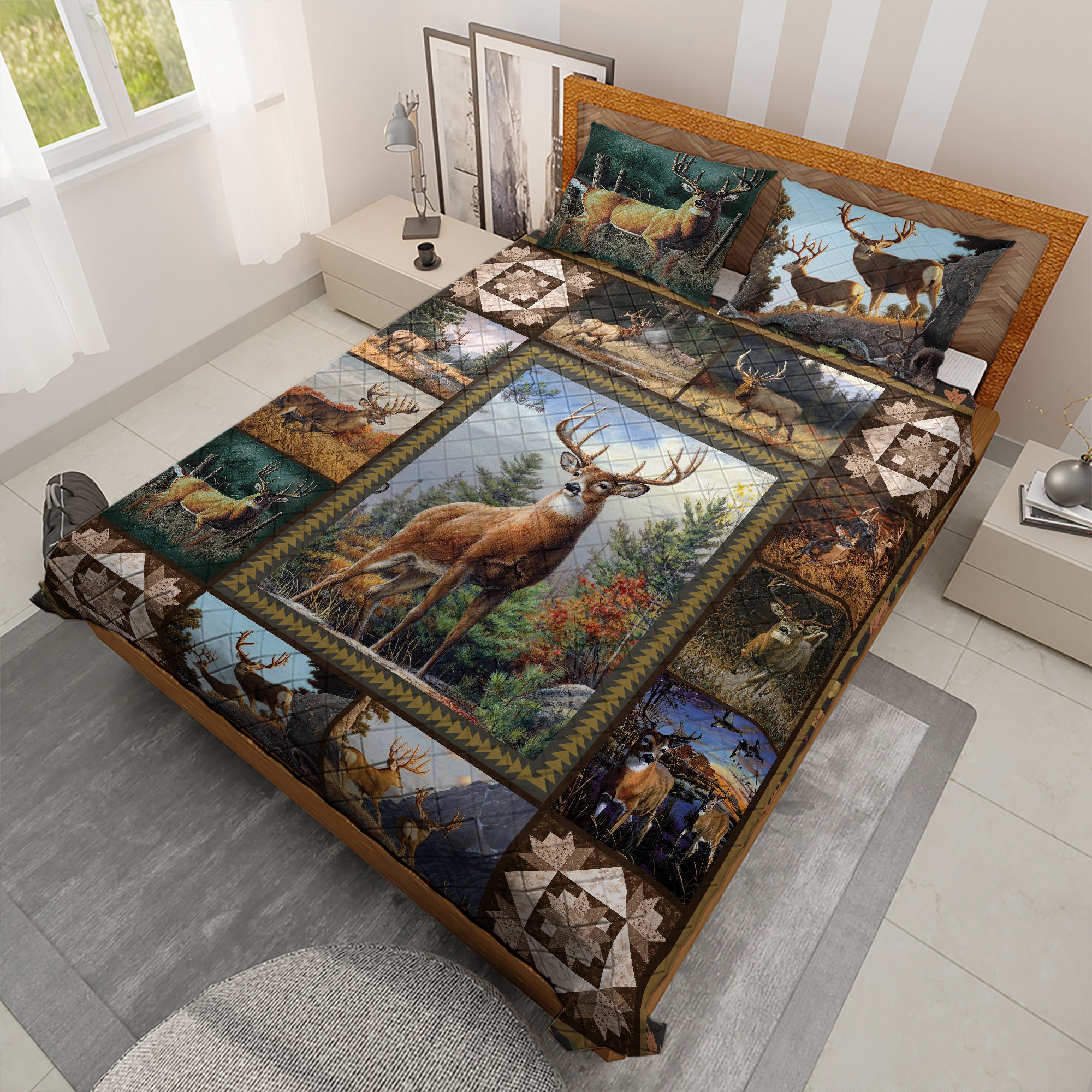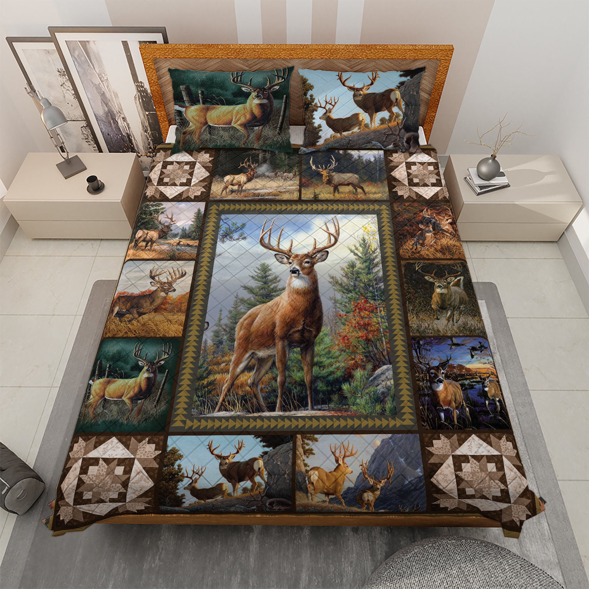Information Retro Deer Hunting Quilt Bedding Set Deer Hunting Quilt Blanket Christmas Gifts Christmas Home decor Hunting gifts for men: