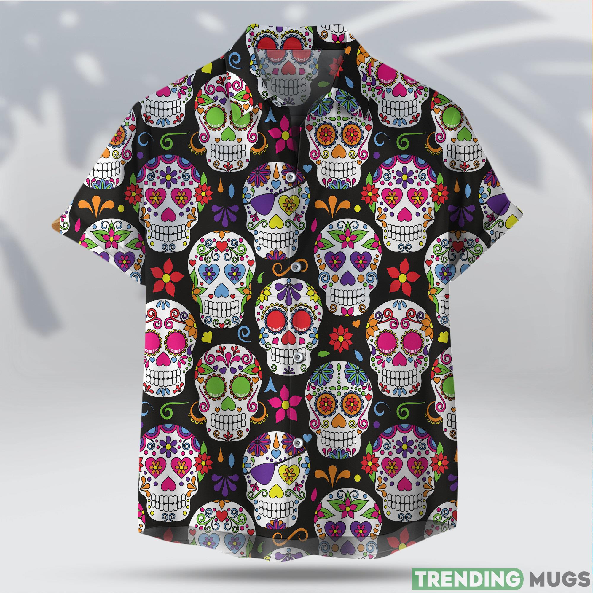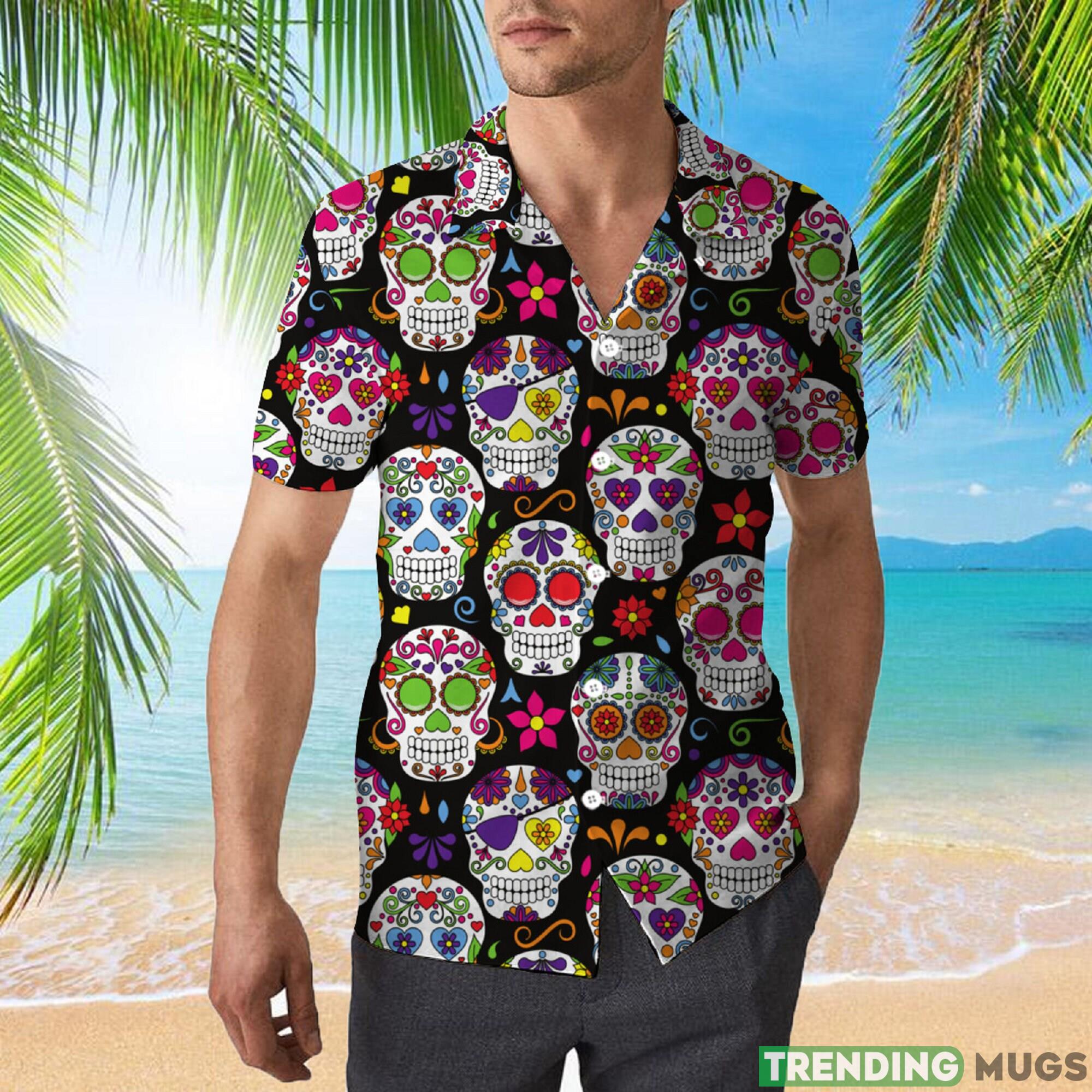 Crafted with meticulous attention to detail, this shirt showcases an eye-catching sugar skull design that pays homage to the traditional Mexican Day of the Dead festivities. The vibrant colors and intricate patterns seamlessly blend with the iconic Hawaiian shirt style, creating a unique fusion that is bound to turn heads wherever you go.