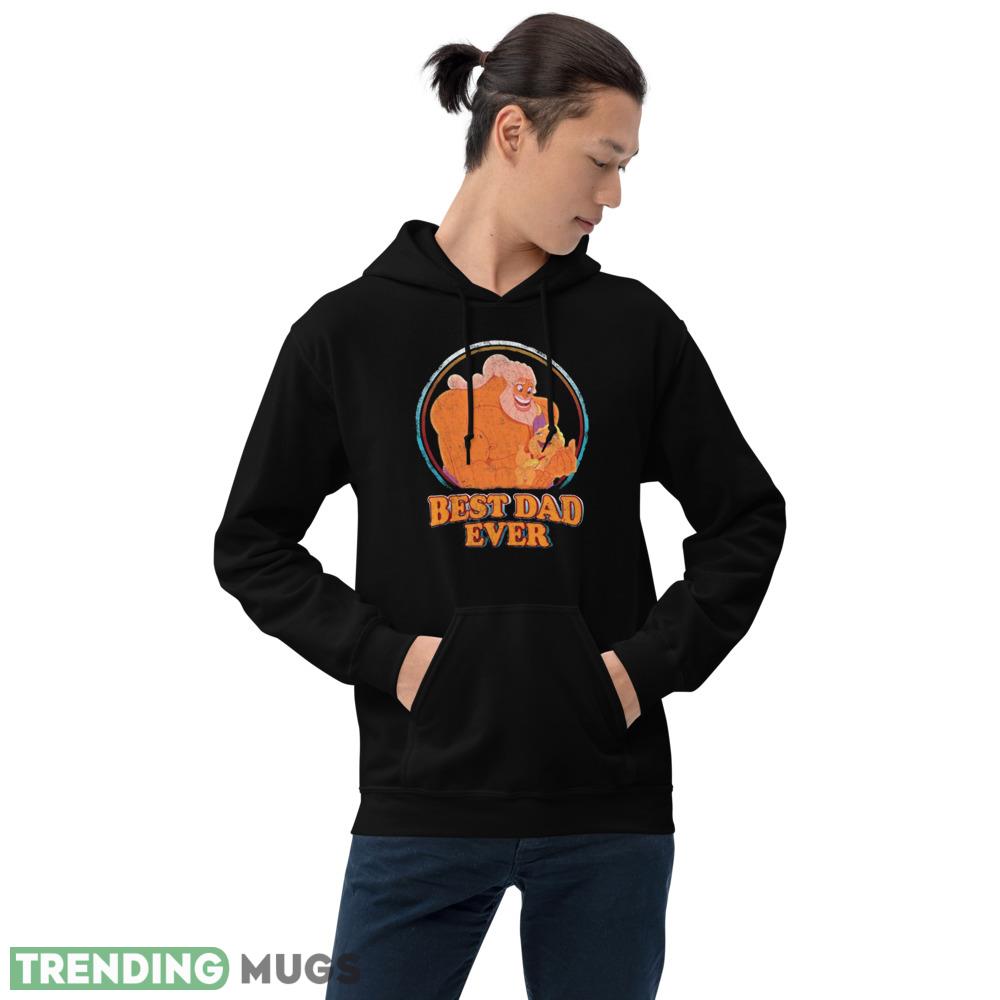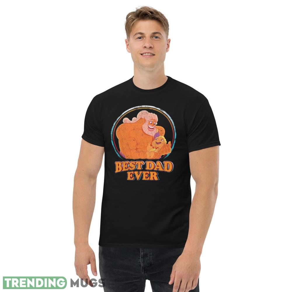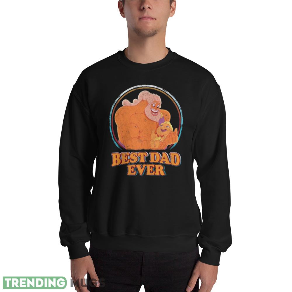 The shirt features a retro design with Zeus and Hercules, two of the most iconic characters from Disney’s Hercules movie. The words “Best Dad Ever” are prominently displayed in bold letters, making it clear to everyone who sees the shirt just how much you appreciate your dad.
