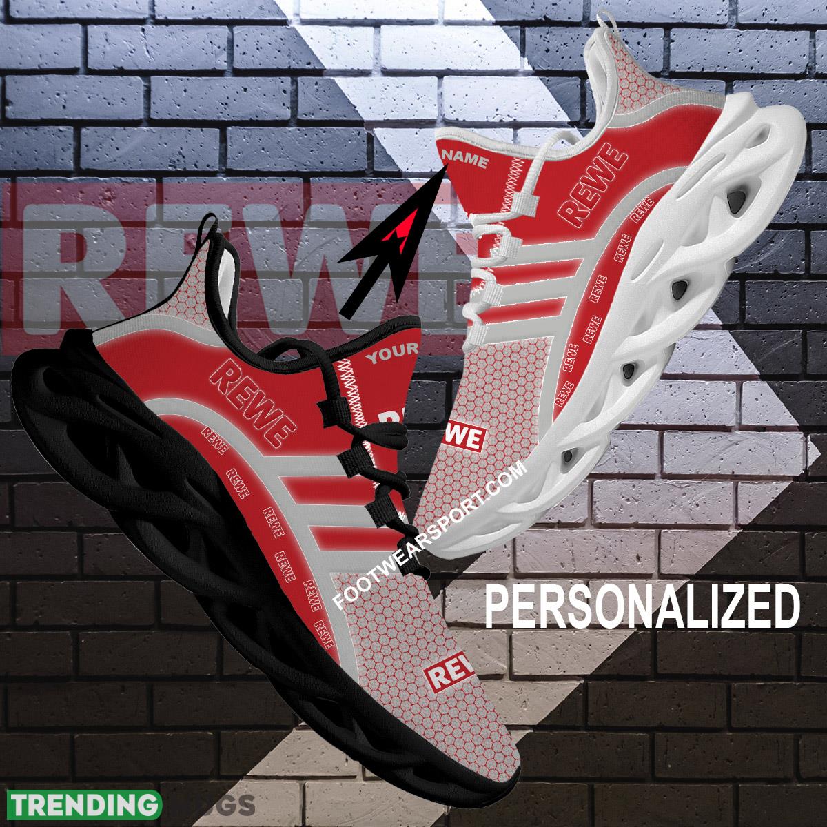 This Rewe Max Soul Shoes Brand For Fans Gift Imagery Sport Sneaker Custom Name Max Soul Shoes is a breathable, lightweight, and comfortable casual outdoor shoe that has a unique design. It is made of a mesh fabric which makes it sweat absorbent and breathable, while the rubber bottom ensures traction, comfort, and durability. It is available in two colors: black or white sole. There are two styles of shoelace holes so you can choose your preference.