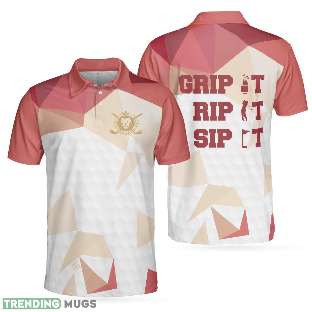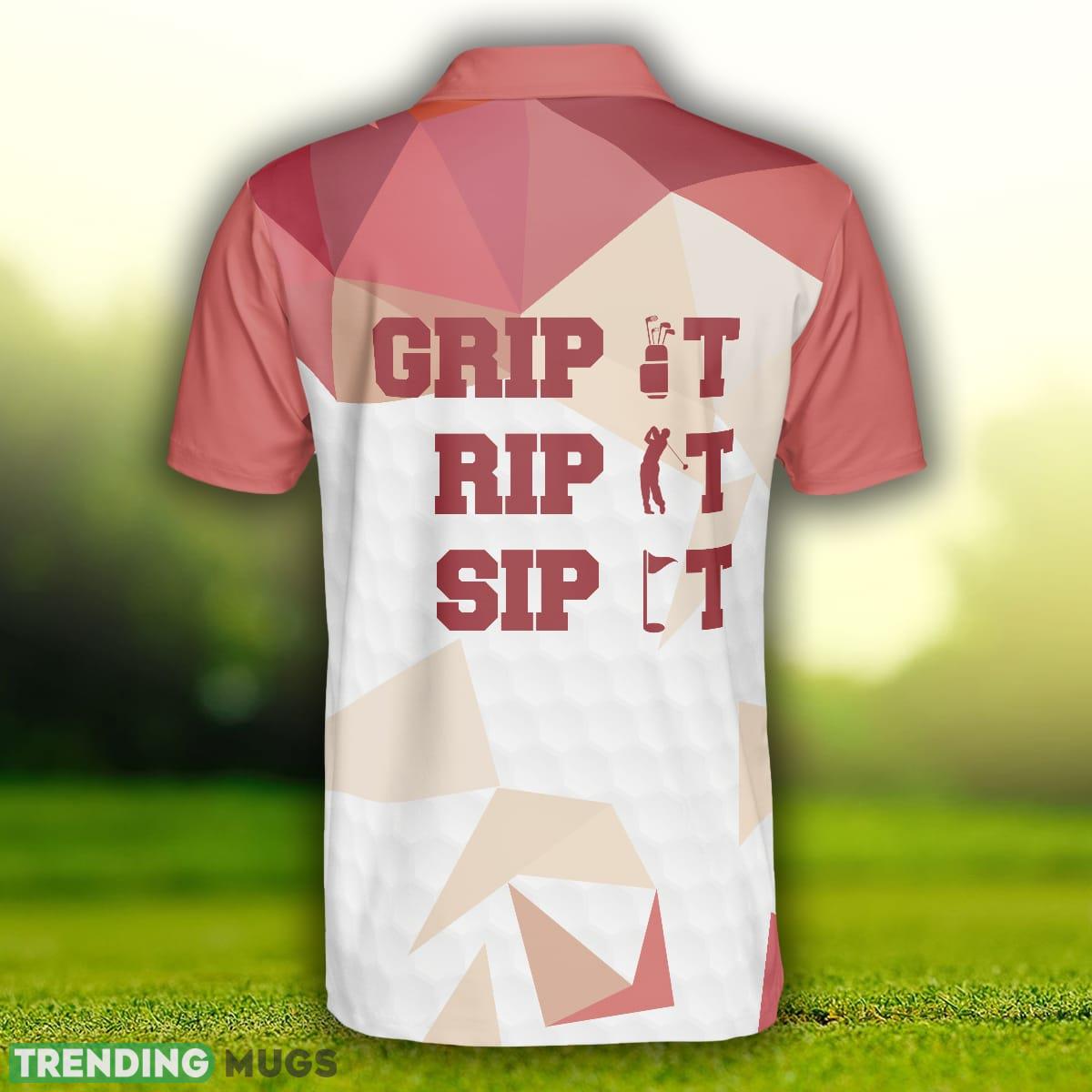 Rip It Sip It Grip It Golfer Golf, White And Pink Golfing Shirt For Male Players, Simple Golf Shirt Design Polo Shirt Information:
