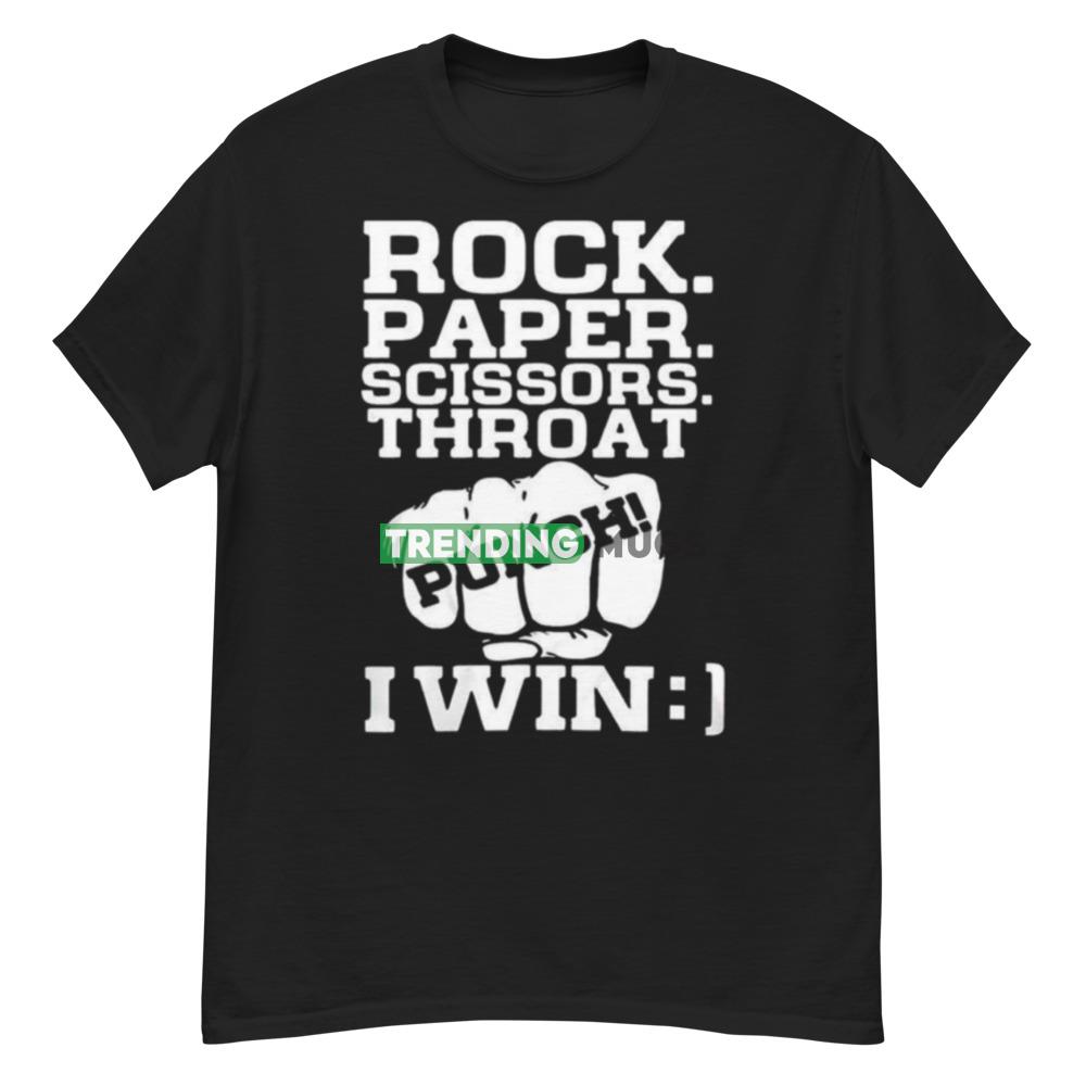 The Rock Paper Scissors Throat Punch I Win Shirt is the perfect addition to any wardrobe! Made from high-quality materials, this shirt features a bold and eye-catching design that is sure to turn heads. With its unique combination of humor and attitude, this shirt is perfect for anyone who loves to make a statement.