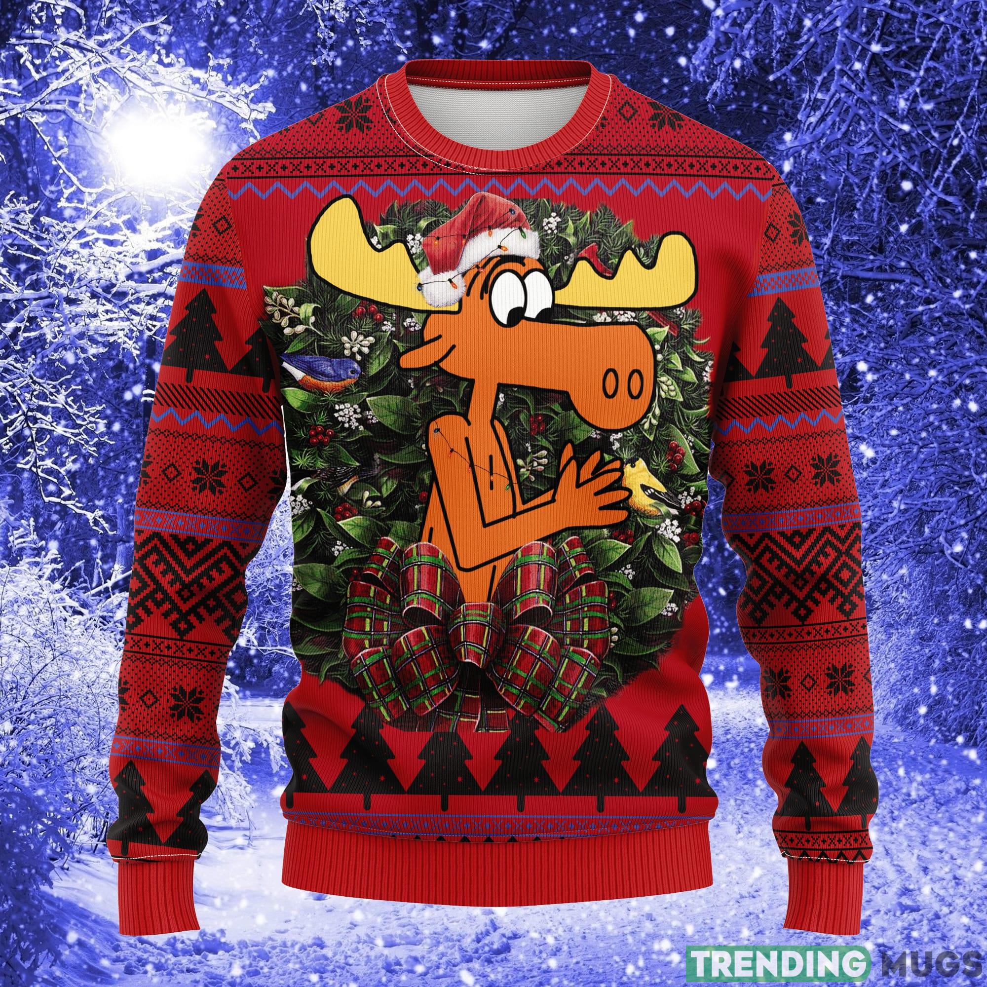 Featuring a playful design with Rocky and Bullwinkle, this sweater combines the joy of Christmas with the nostalgia of these beloved cartoon characters. The vibrant colors and intricate details make it a true conversation starter, ensuring that you’ll be the center of attention at any gathering.