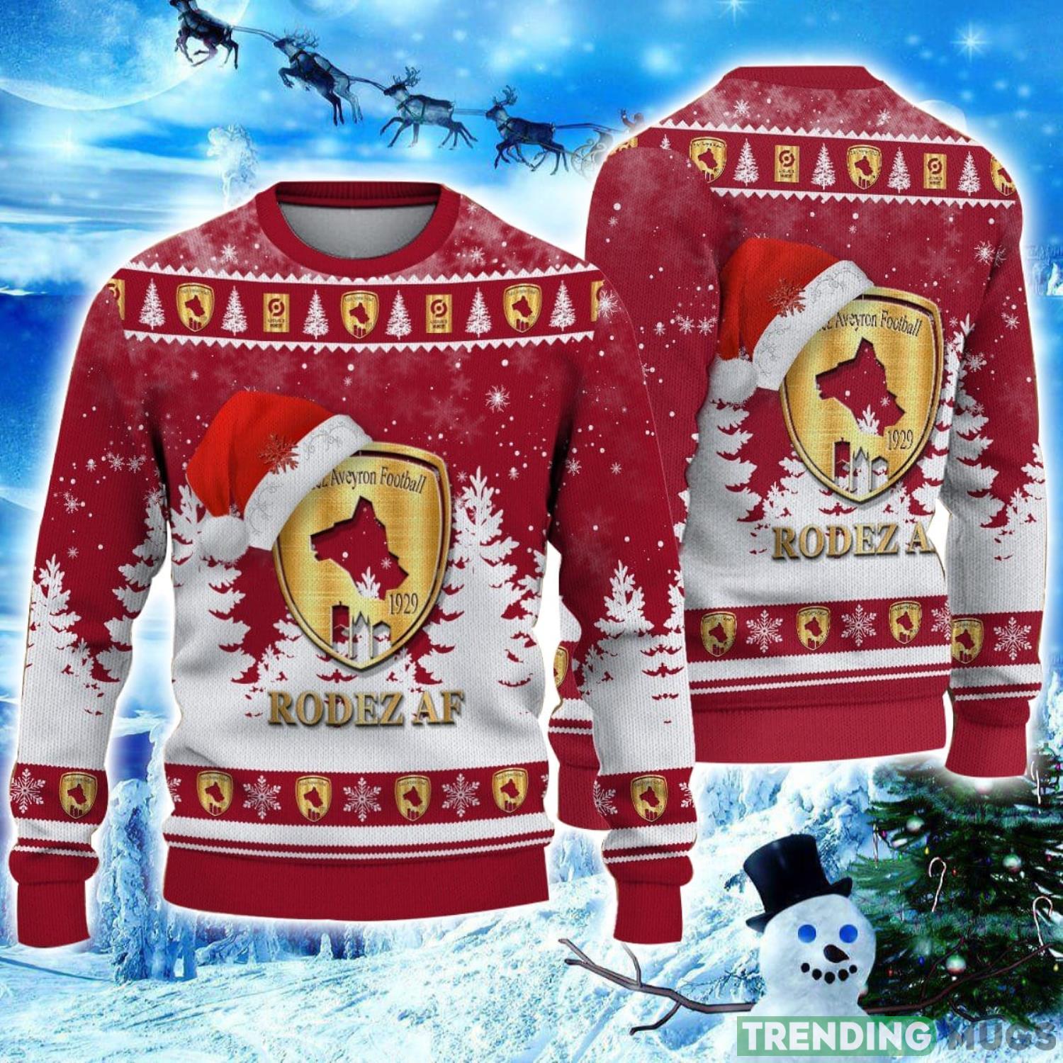 Rodez Aveyron Football Logo Wearing Santa Hat Ugly Christmas Sweater Unisex 3D Christmas sweater Informations: