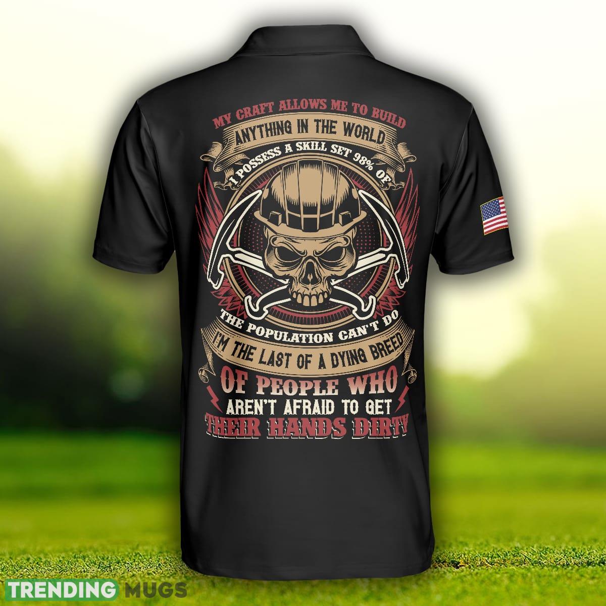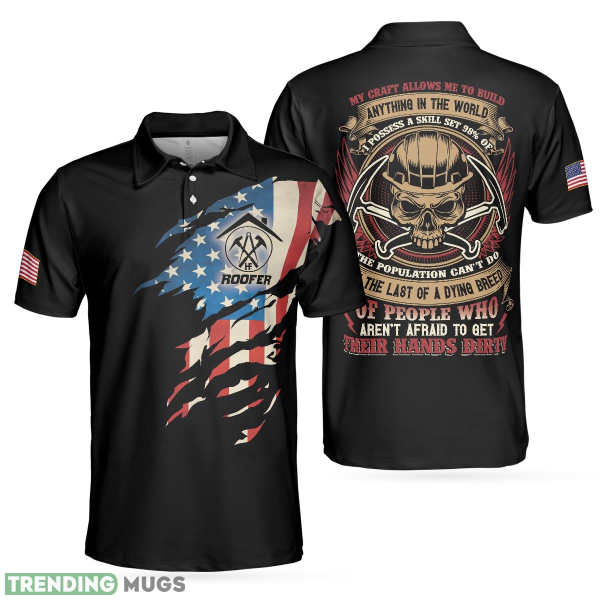 Roofer My Craft Allows Me To Build Anything, Skull Ripped American Flag Roofer Shirt Polo Shirt Information: