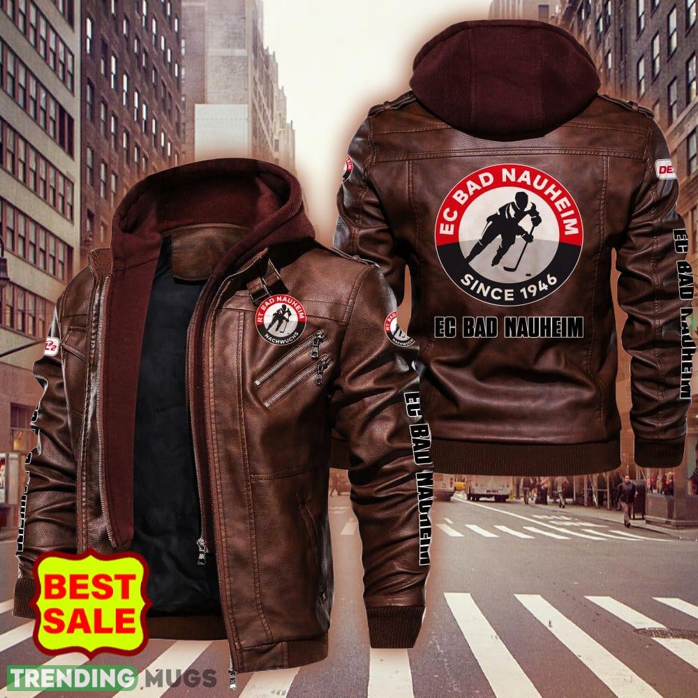 Some of the Rote Teufel Bad Nauheim Big Logo Brown And Black Leather Jacket Men Women photos