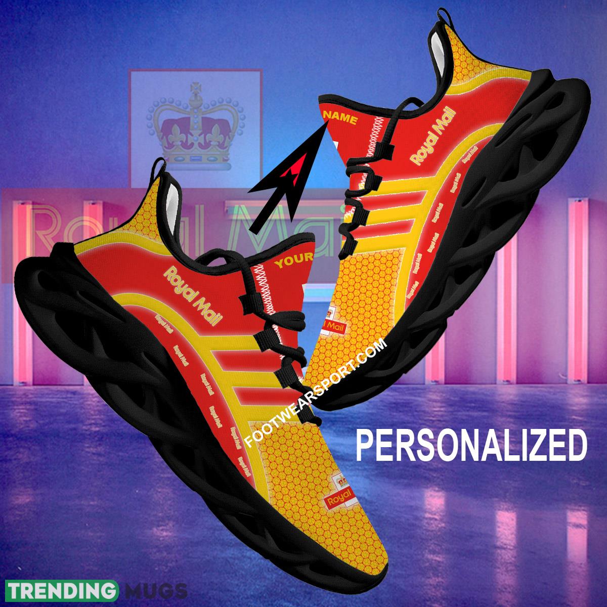 This Royal Mail Max Soul Shoes Brand For Fans Gift Monogram Chunky Sneaker Custom Name Max Soul Shoes is a breathable, lightweight, and comfortable casual outdoor shoe that has a unique design. It is made of a mesh fabric which makes it sweat absorbent and breathable, while the rubber bottom ensures traction, comfort, and durability. It is available in two colors: black or white sole. There are two styles of shoelace holes so you can choose your preference.