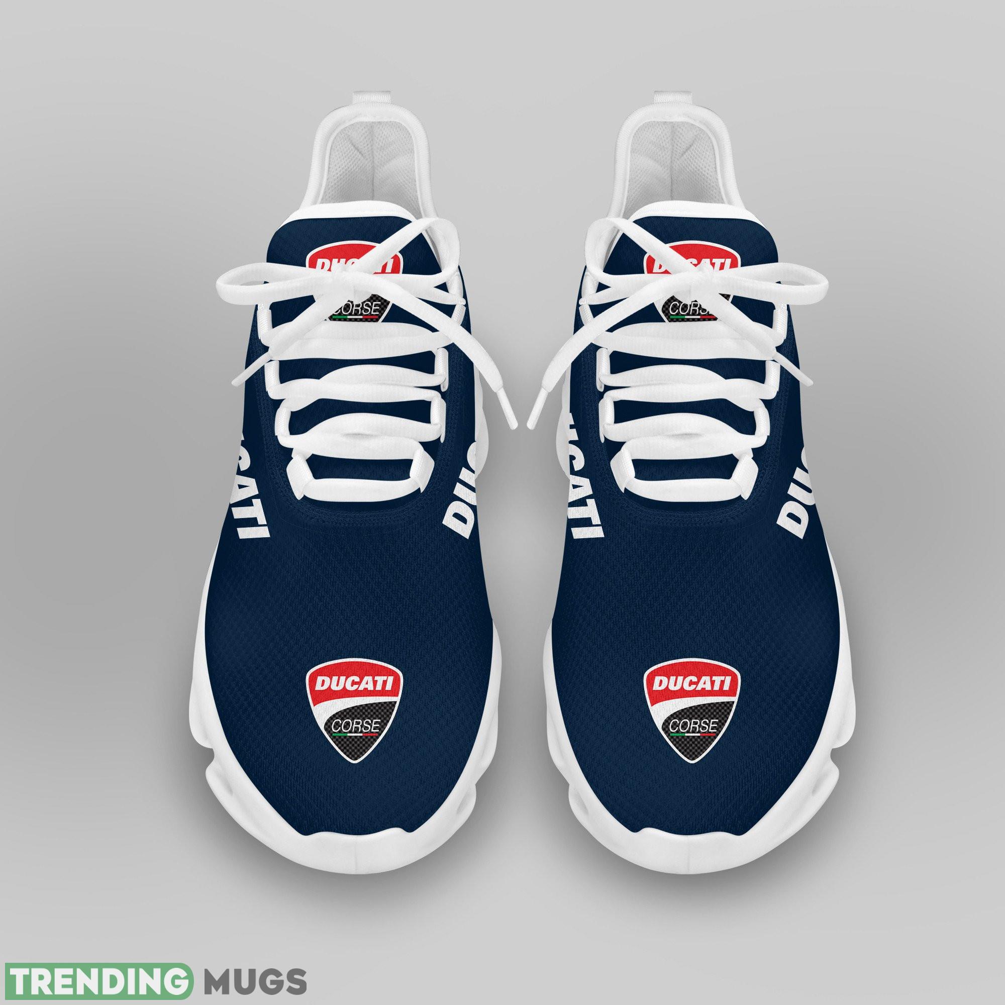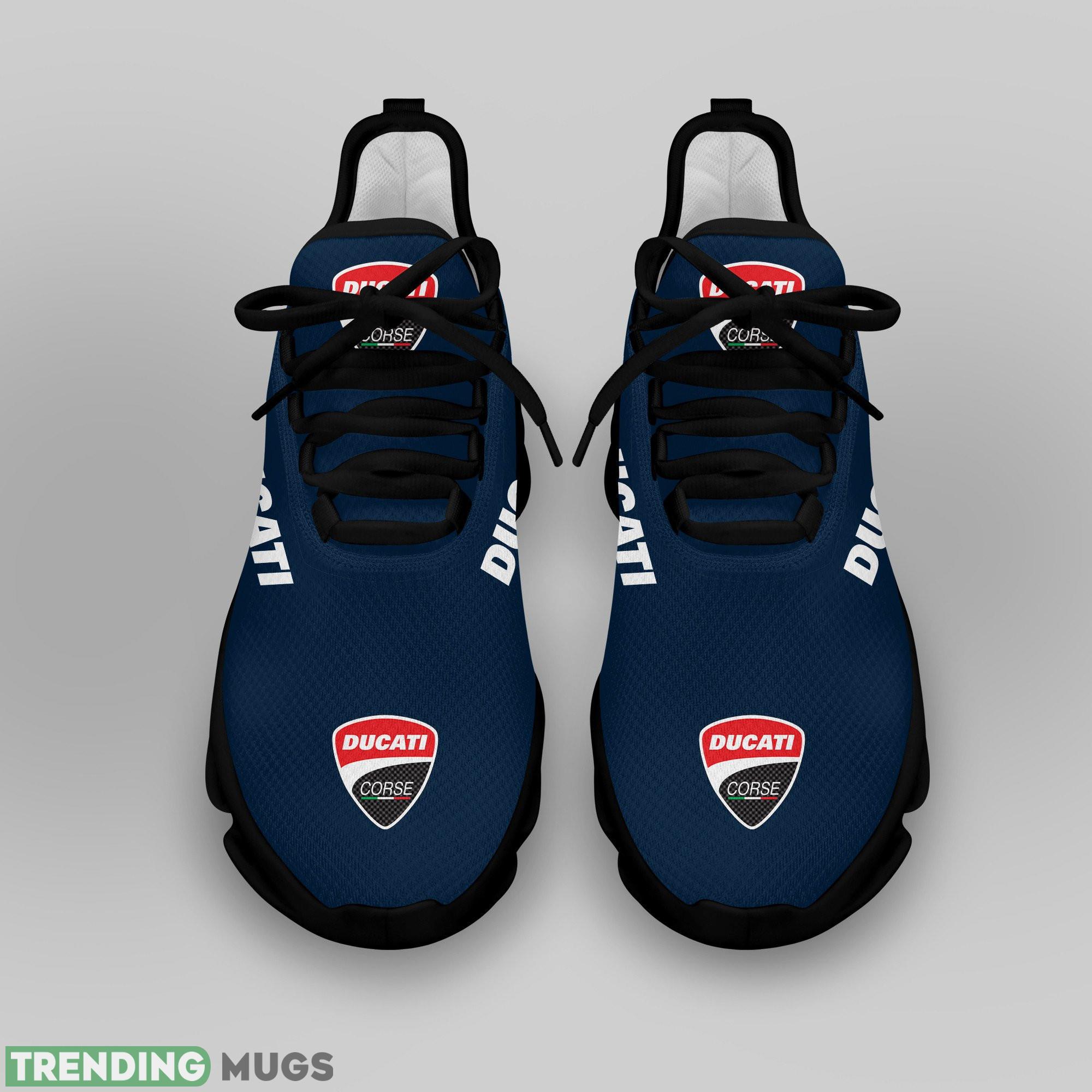This Running Shoes DUCATI Logo Motorcycle Racing Stride Max Soul Sneakers For Men Women is a breathable, lightweight, and comfortable casual outdoor shoe that has a unique design. It is made of a mesh fabric which makes it sweat absorbent and breathable, while the rubber bottom ensures traction, comfort, and durability. It is available in two colors: black or white sole. There are two styles of shoelace holes so you can choose your preference.