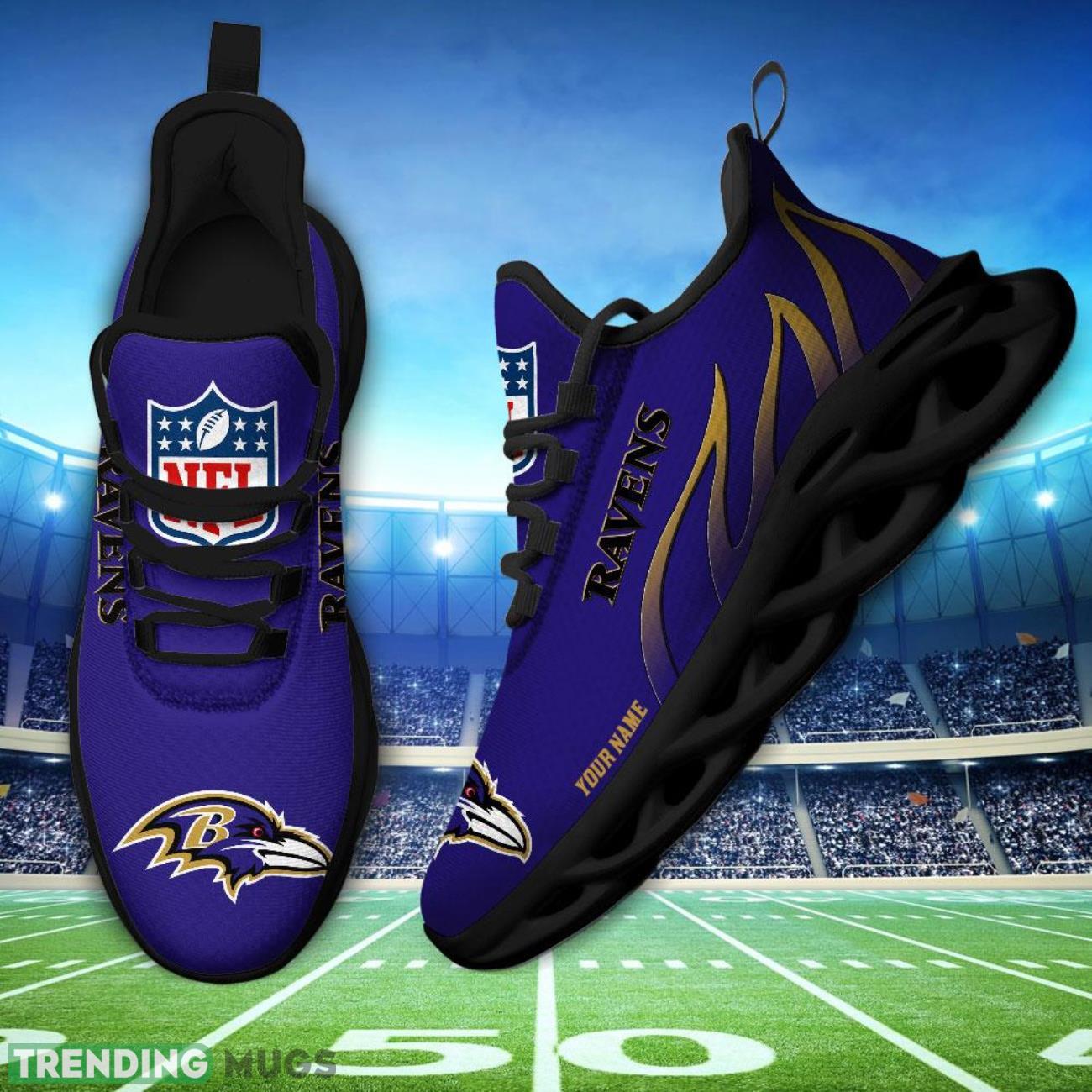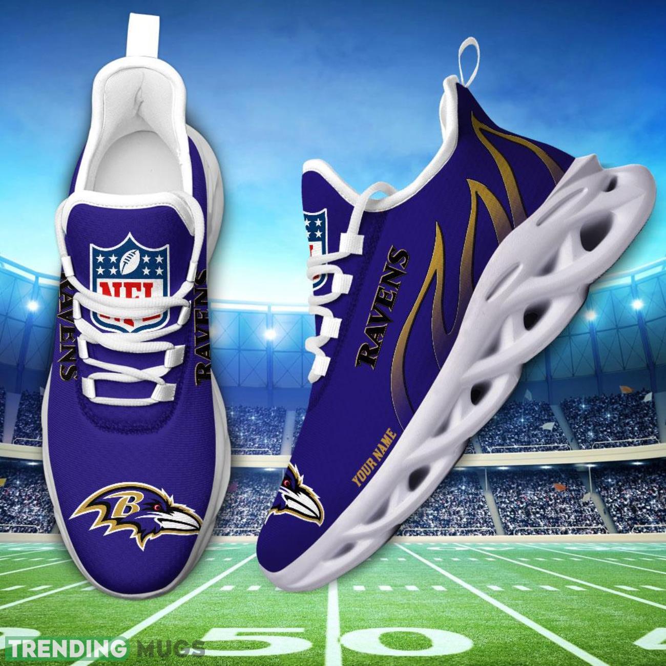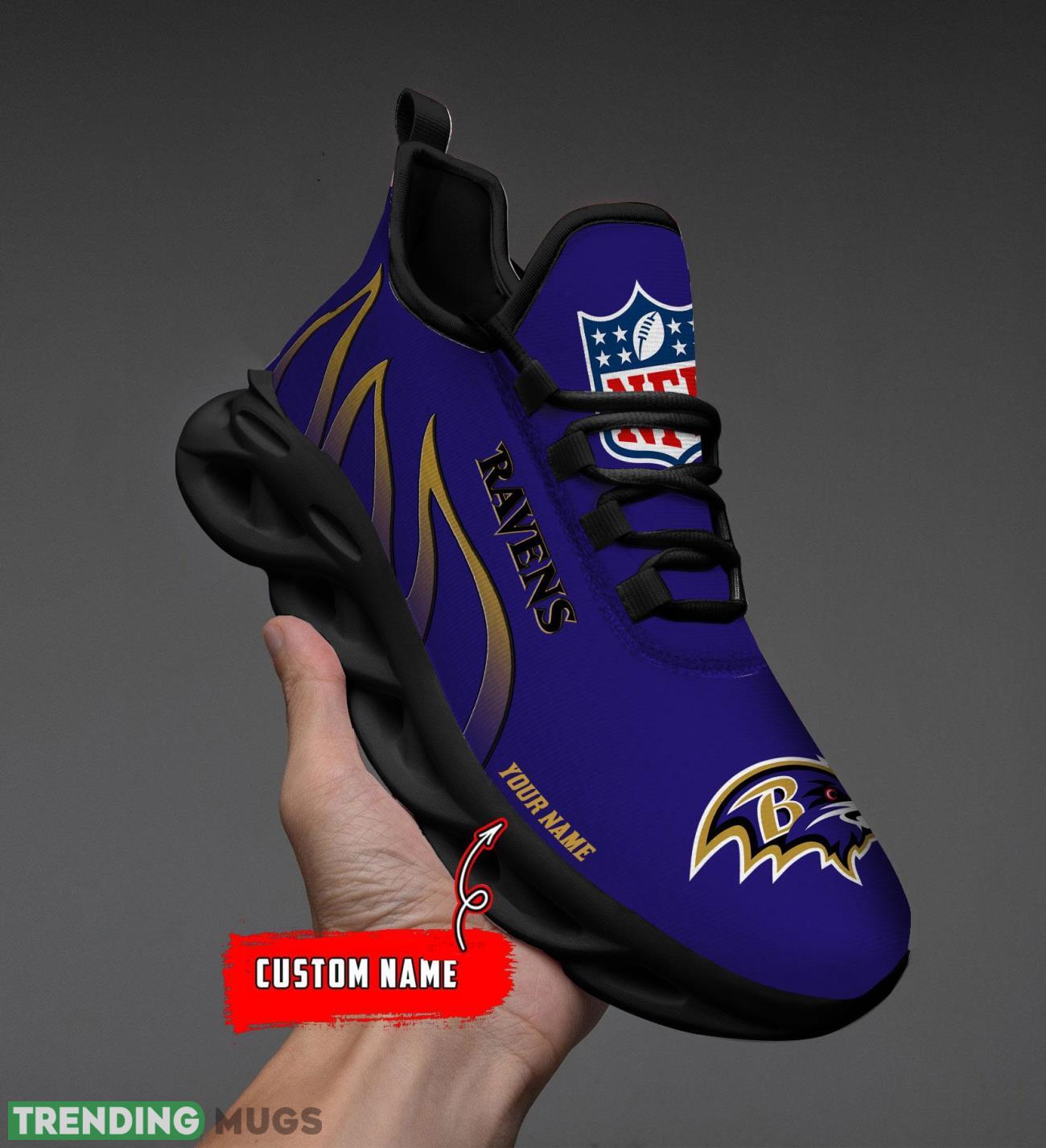 Running Sneakers NFL Baltimore Ravens Fire Pattern Personalized Name Max Soul Shoes Sneakers information: