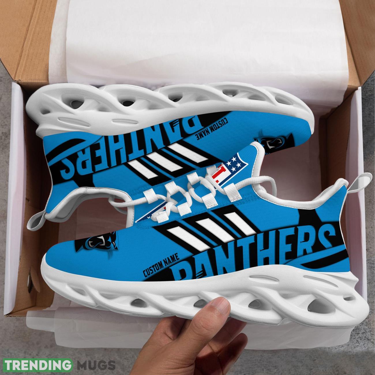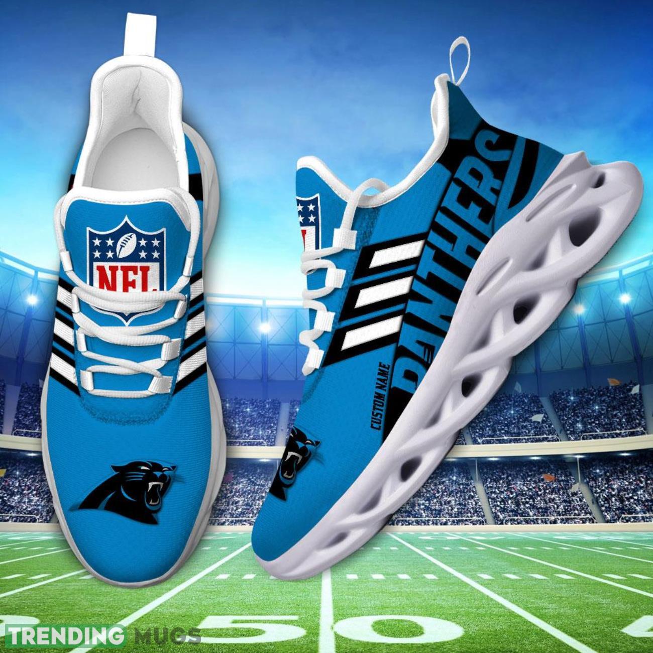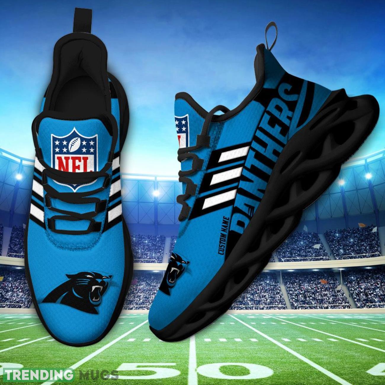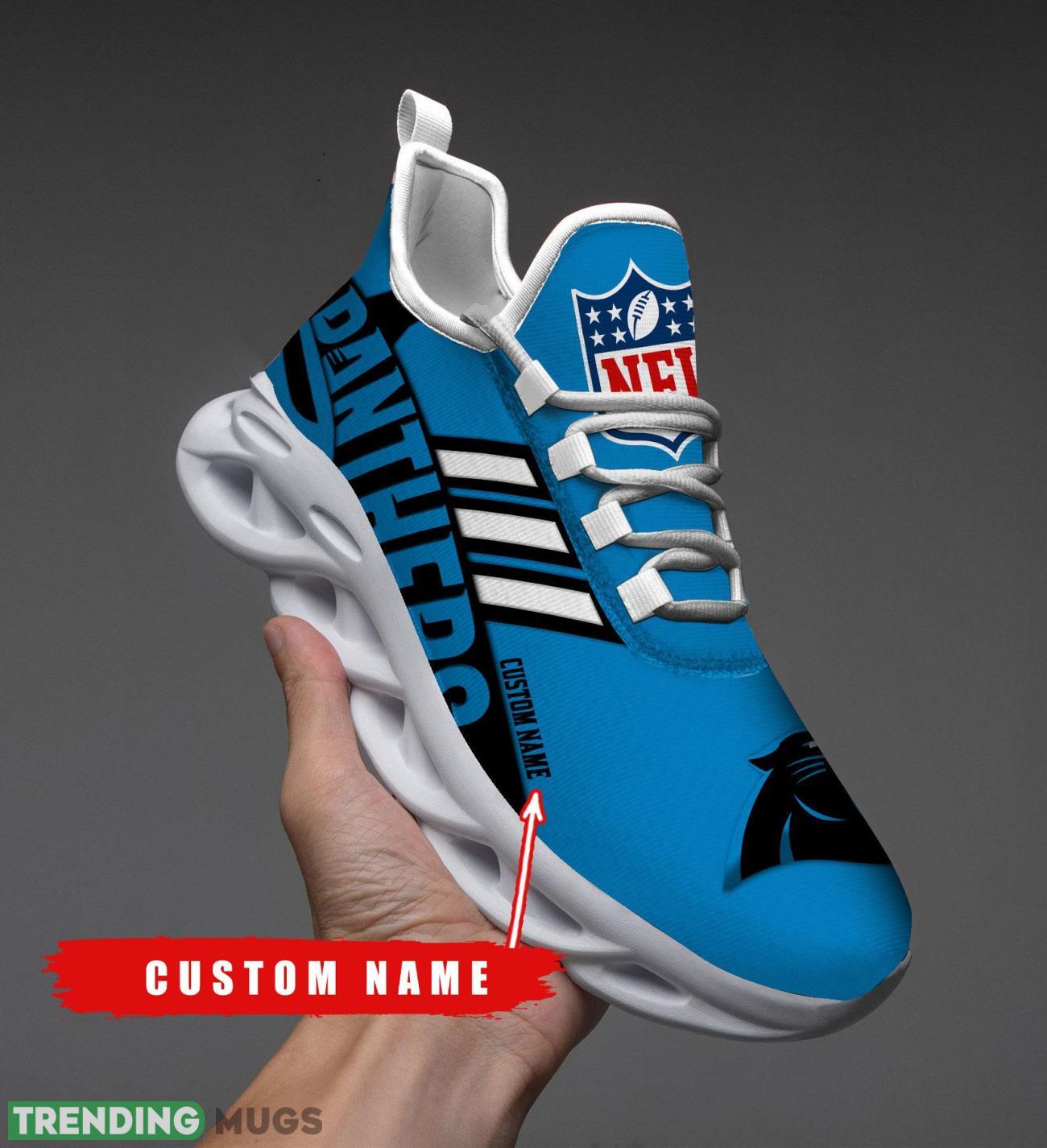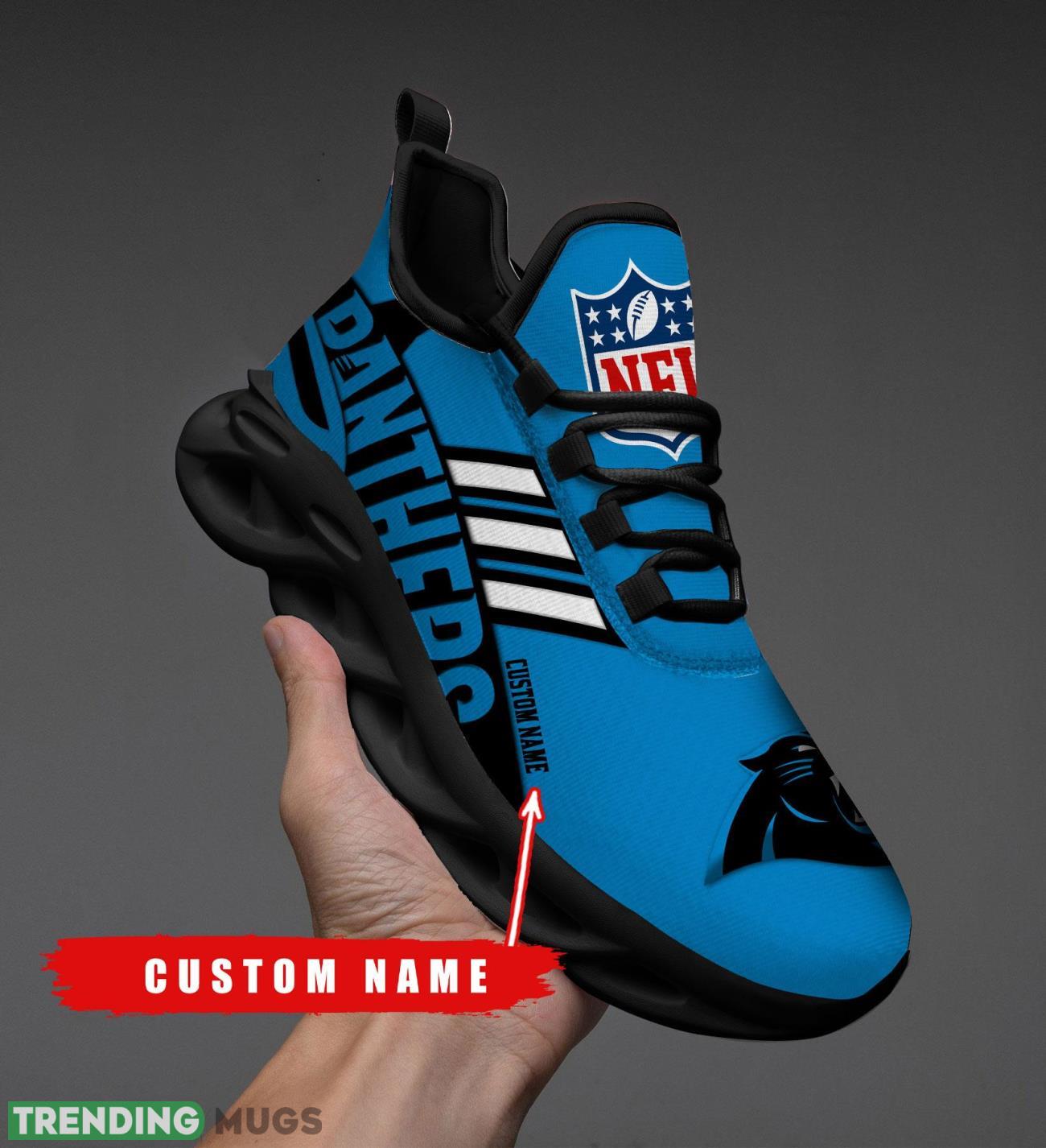 Running Sneakers NFL Carolina Panthers Big Logo Striped Style Personalized Name Max Soul Shoes Sneakers information: