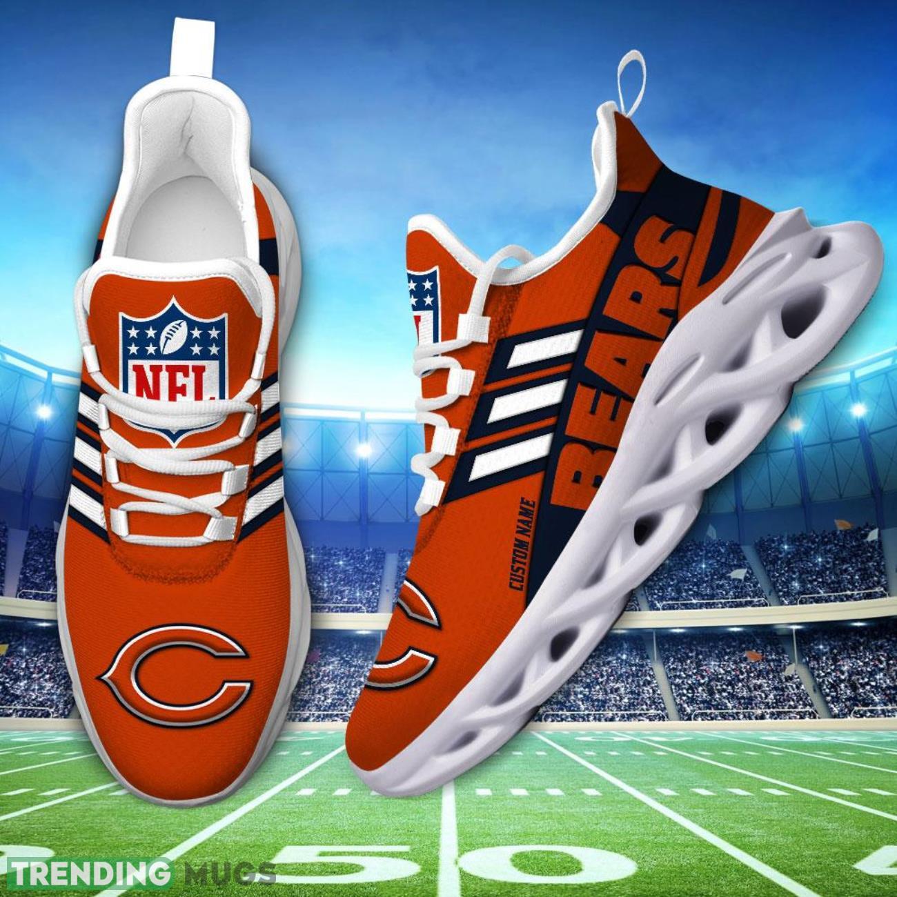 Running Sneakers NFL Chicago Bears Big Logo Striped Style Personalized Name Max Soul Shoes Sneakers information: