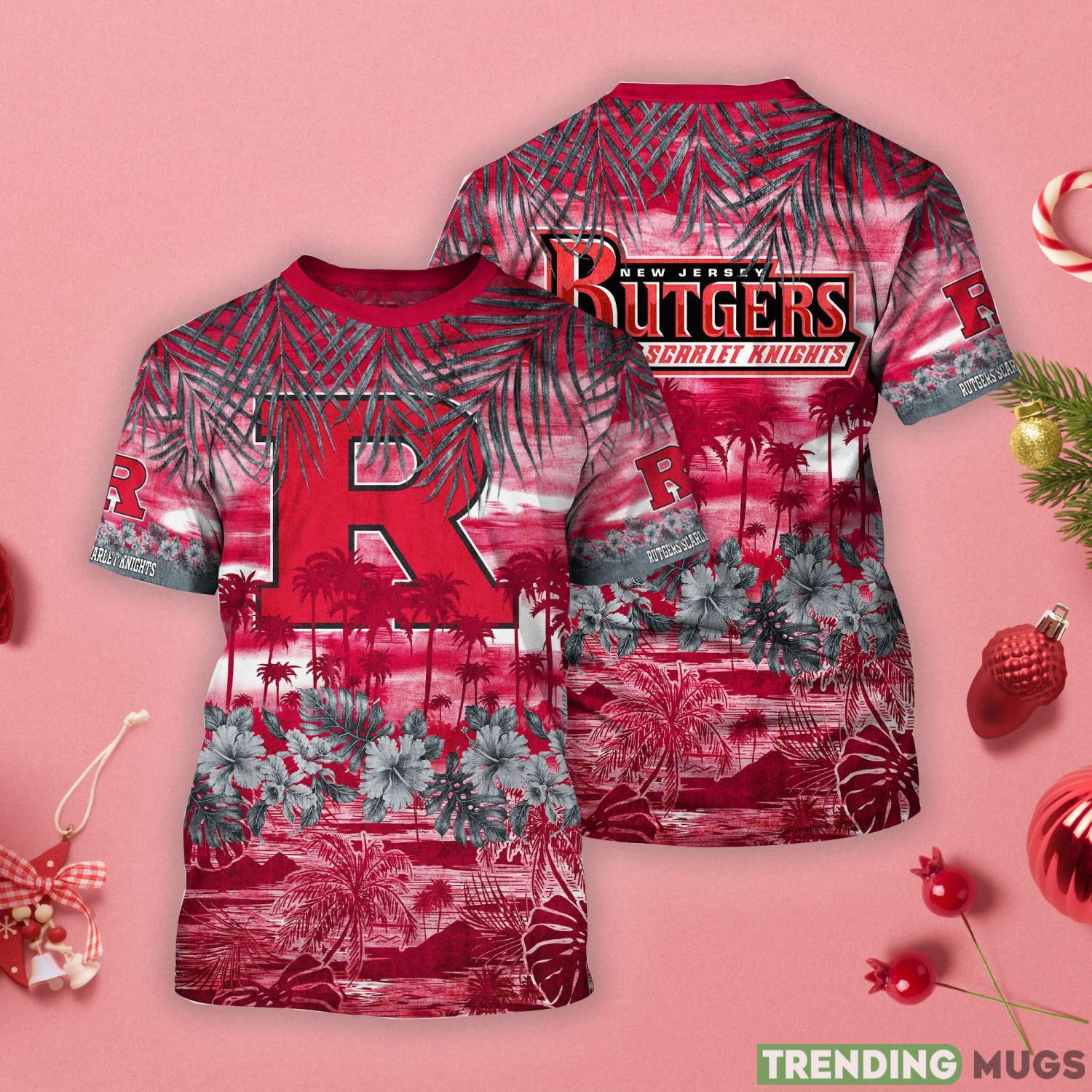 Rutgers Scarlet Knights Tropical Palm And Flower Pattern 3D T-Shirt Information