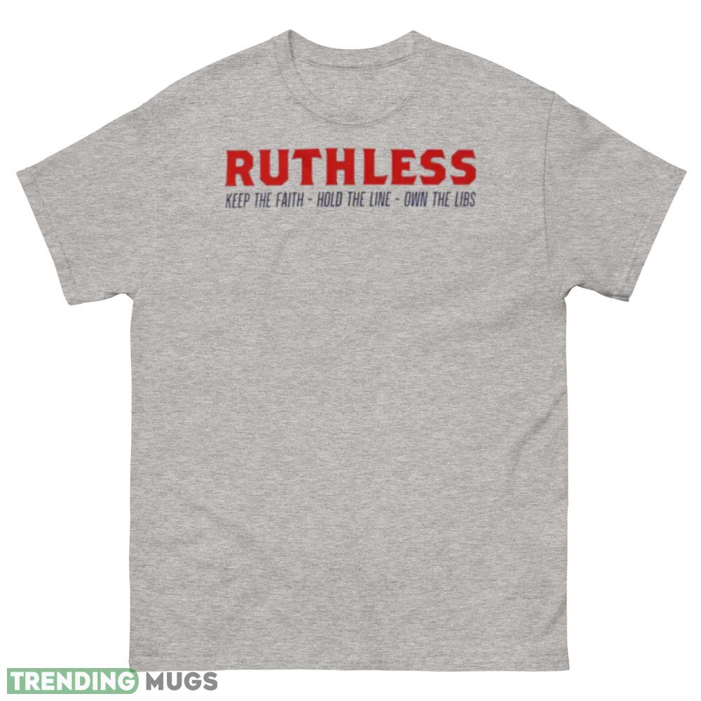 Whether you’re heading out to a political rally or just running errands around town, the Ruthless Keep The Faith Hold The Line Own The Libs Shirt is the perfect way to make a statement and show the world what you stand for. So why wait? Order yours today and start making a difference!