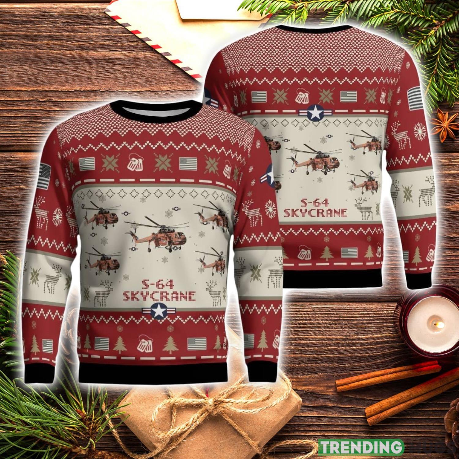 Some of the S-64 Skycrane S64 Aircraft Red Ugly Christmas Sweater Christmas Season Gift Veteran USA Air Force 3D Sweater photos