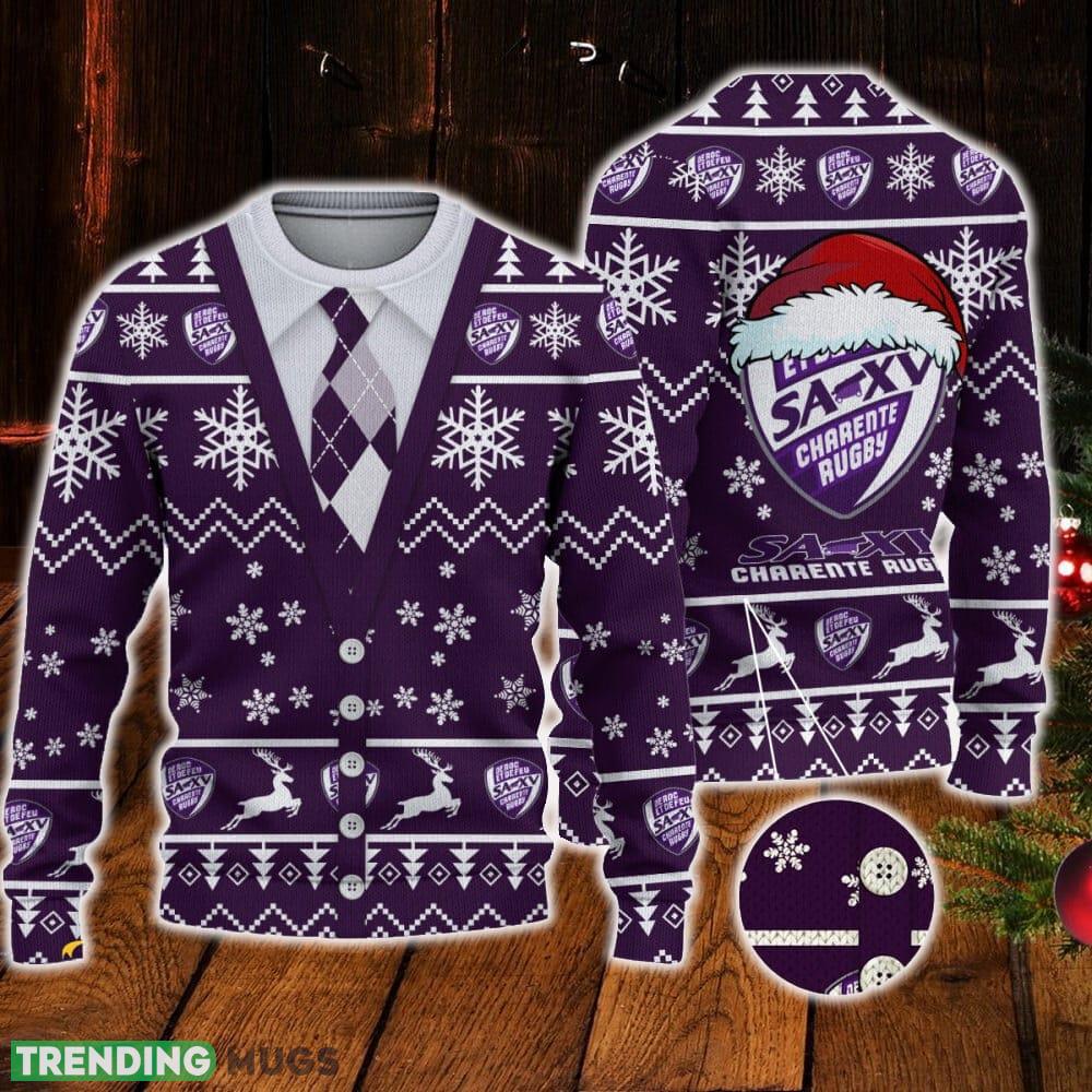 Crafted with care, this sweater features the SA XV Charente logo, adding a touch of team spirit to your holiday celebrations. The vibrant colors and intricate details make it a standout piece that is sure to turn heads at any holiday gathering.