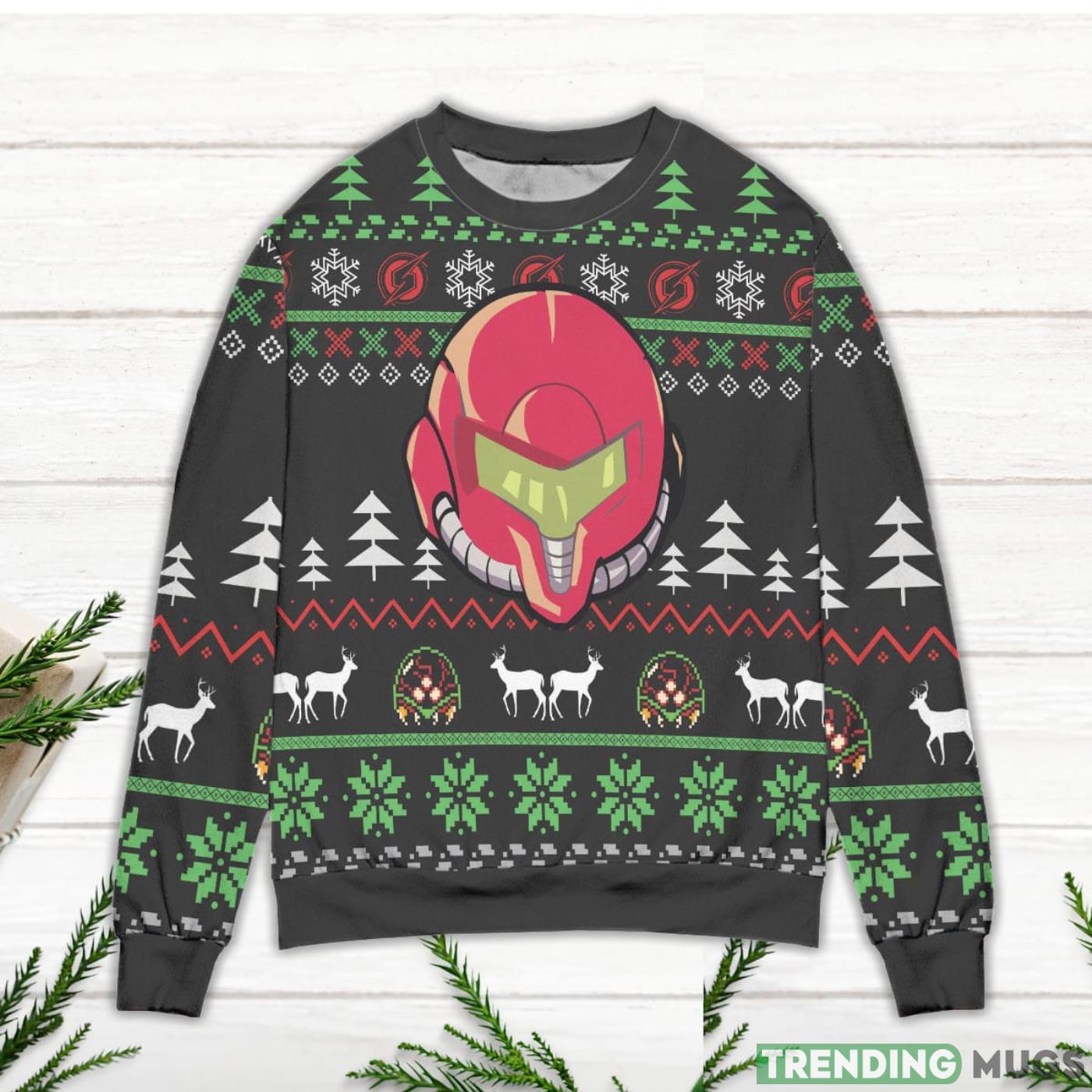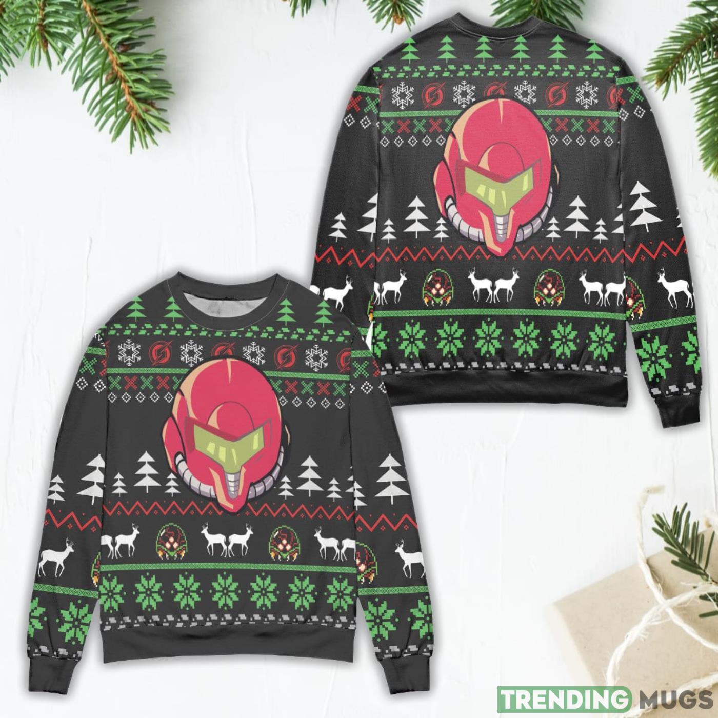 Samus Aran Helmet Pine Tree Pattern Ugly Christmas Sweater Informations: