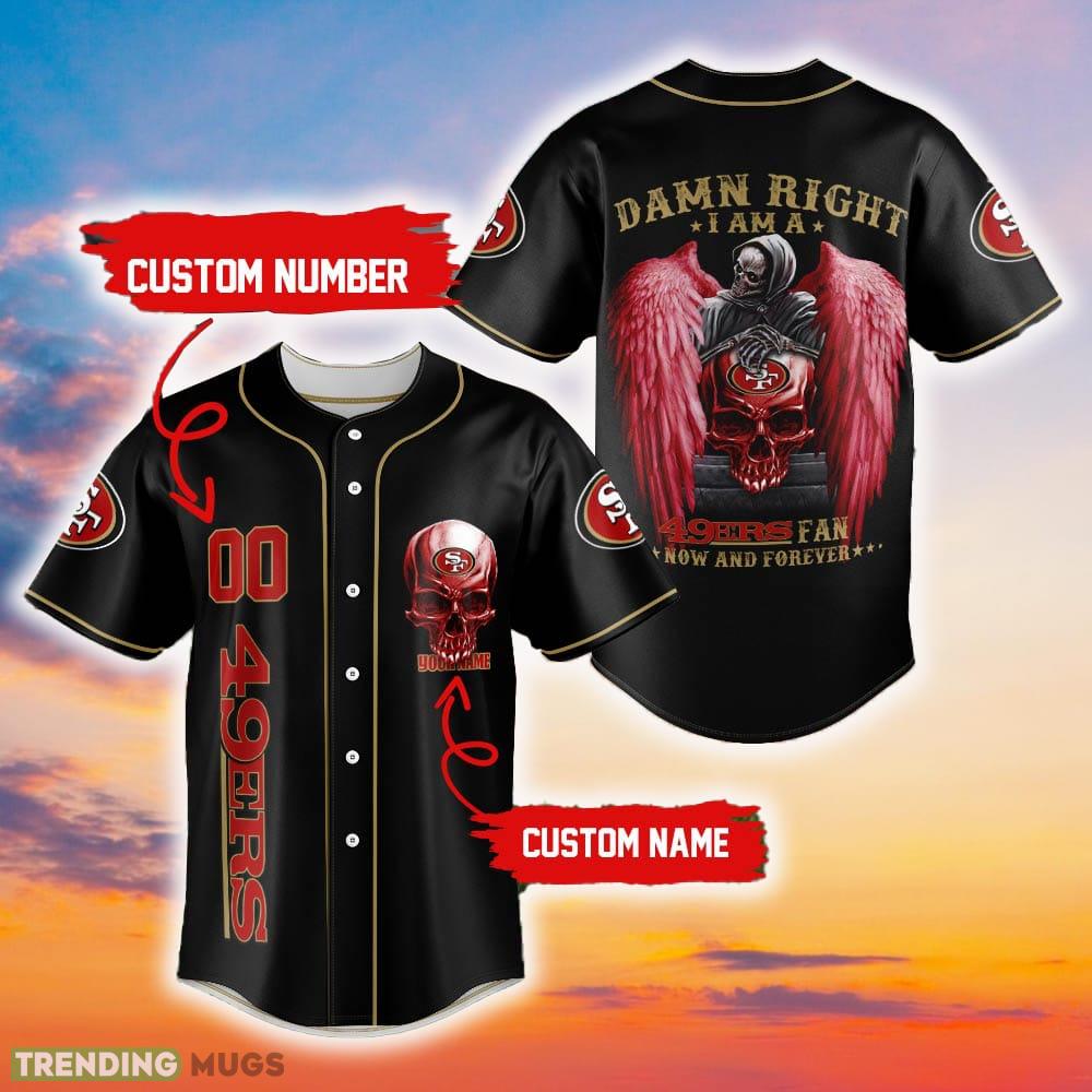 San Francisco 49ers Damn Right Skull NFL Baseball Jersey Shirt Custom Number And Name Information: