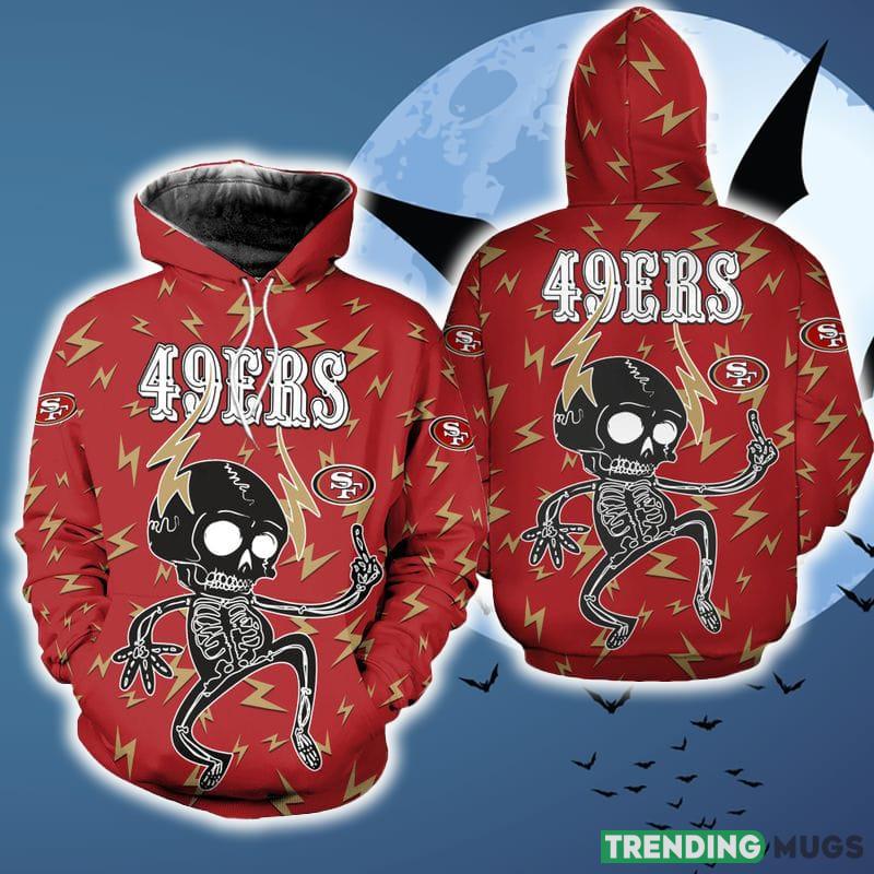 Some of the San Francisco 49ers Electric Shock Cute Skeleton Red Color Halloween Skull Hoodie AOP For Men And Women Gift Fans photos