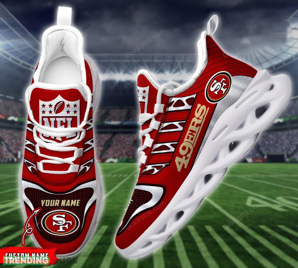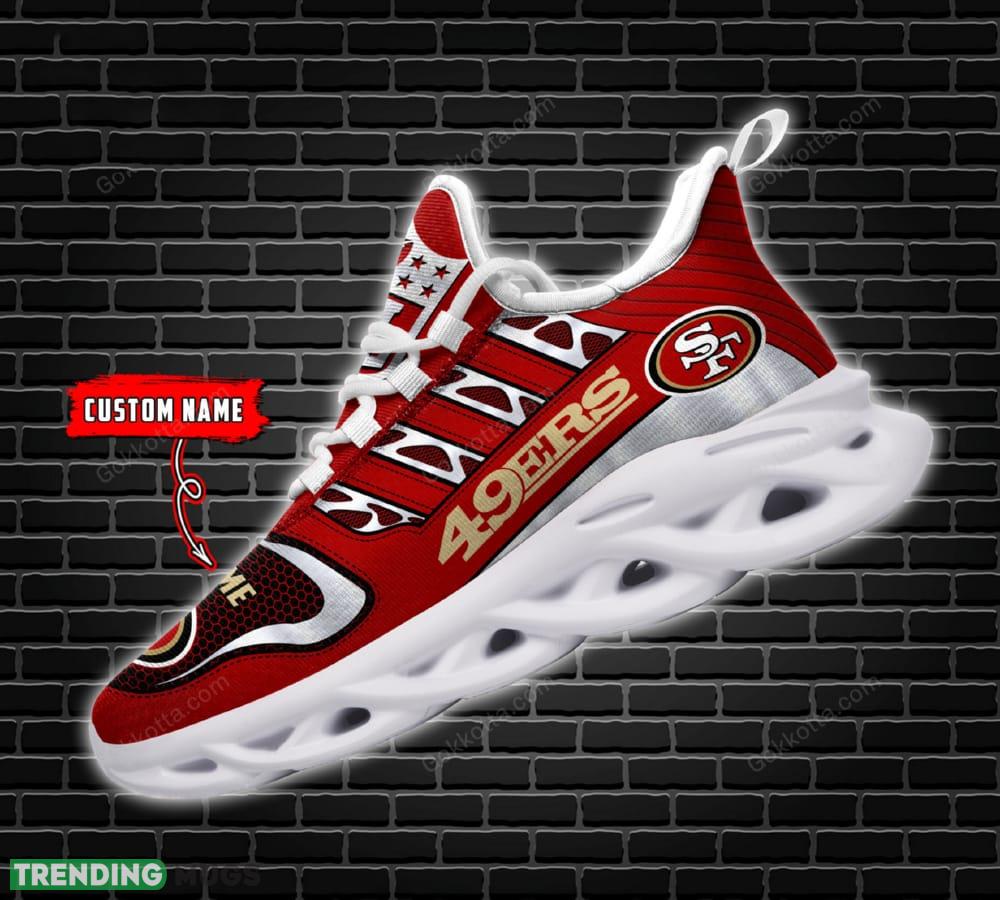 This San Francisco 49ers Max Soul Shoes Chic Gift For Men And Women Chunky Sneakers Custom Name is a breathable, lightweight, and comfortable casual outdoor shoe that has a unique design. It is made of a mesh fabric which makes it sweat absorbent and breathable, while the rubber bottom ensures traction, comfort, and durability. It is available in two colors: black or white sole. There are two styles of shoelace holes so you can choose your preference.