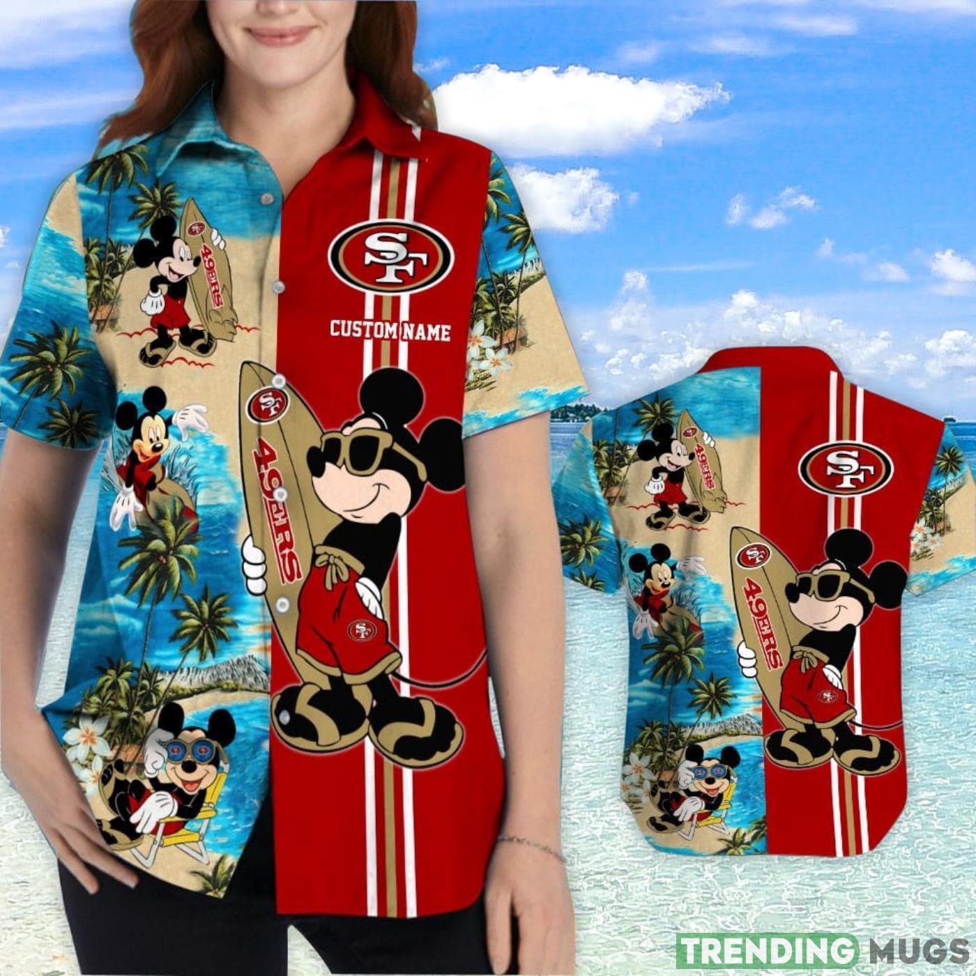 Introducing the Hawaiian Shirt! This shirt is perfect for any San Francisco 49ers fan who loves Mickey Mouse and surfing. Customize it with your name for a unique look that will show your support for your team. Made from high-quality materials, this shirt is perfect for showing your team spirit at the next game or tailgate party. Order yours today and be ready to cheer on the 49ers in style!