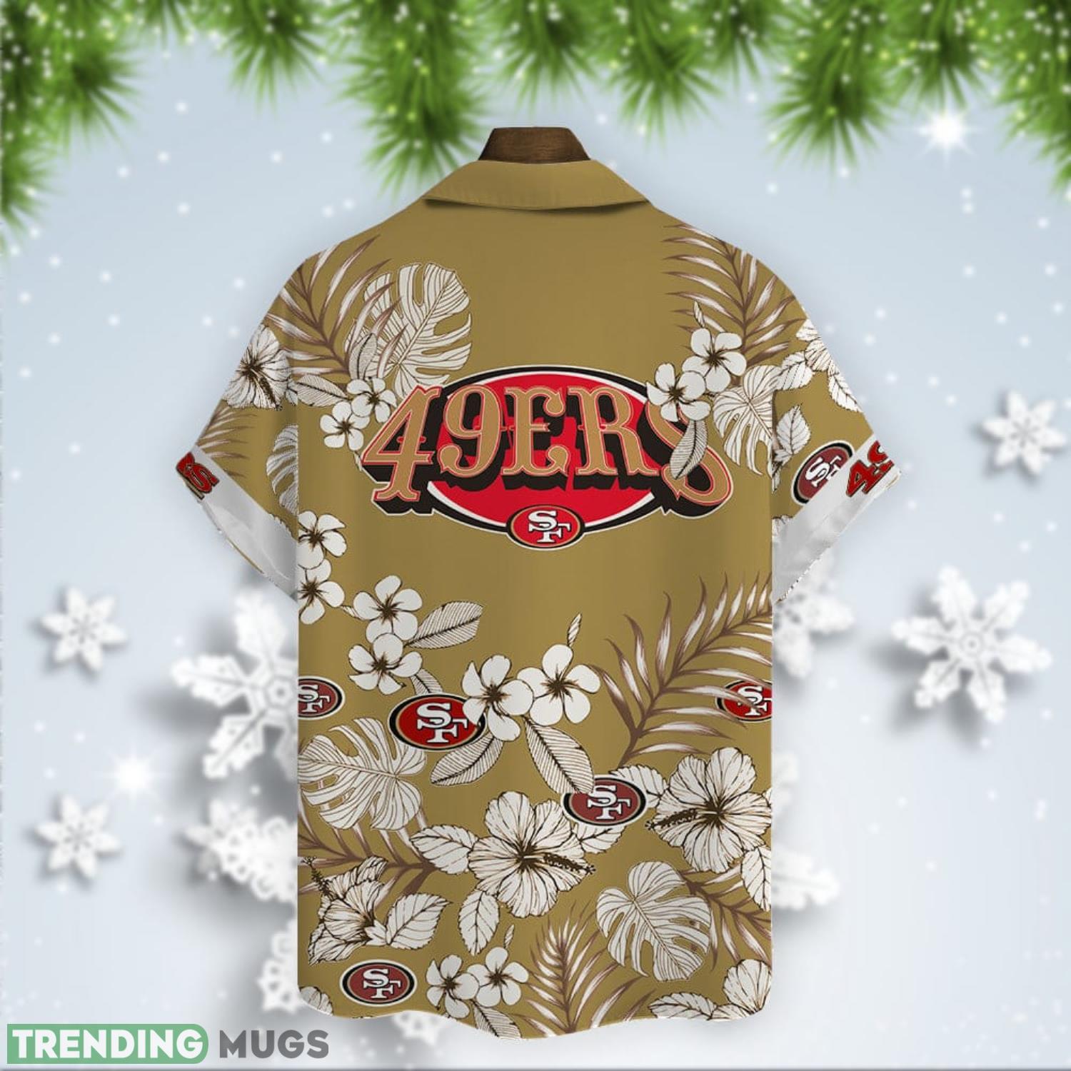 Featuring the iconic San Francisco 49ers logo and team colors, this shirt is designed to turn heads wherever you go. The all-over print showcases your unwavering support for the team, adding a touch of tropical flair to your game day outfit.