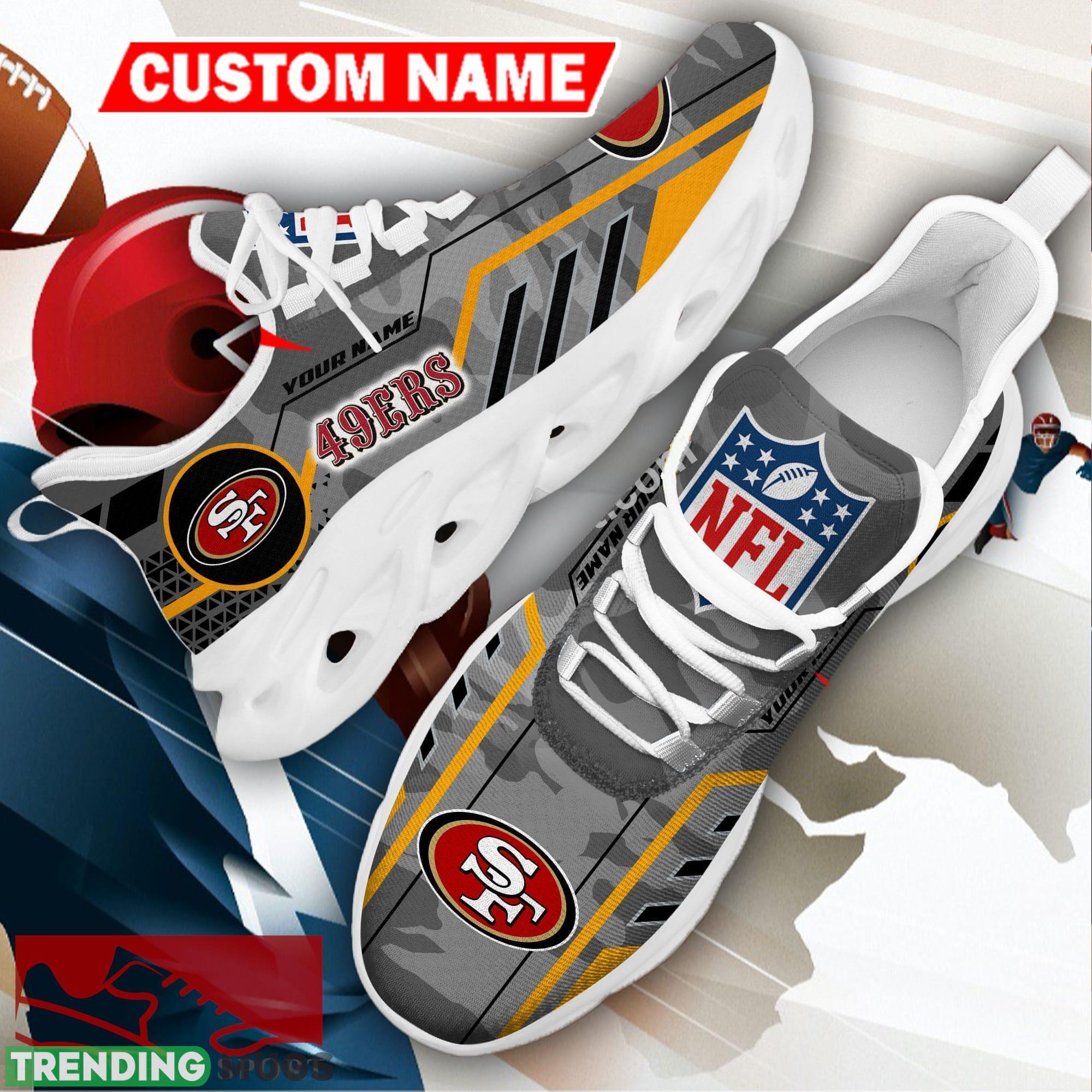 San Francisco 49ers NFL Logo Running Sneakers Camo Grey Max Soul Shoes Personalized