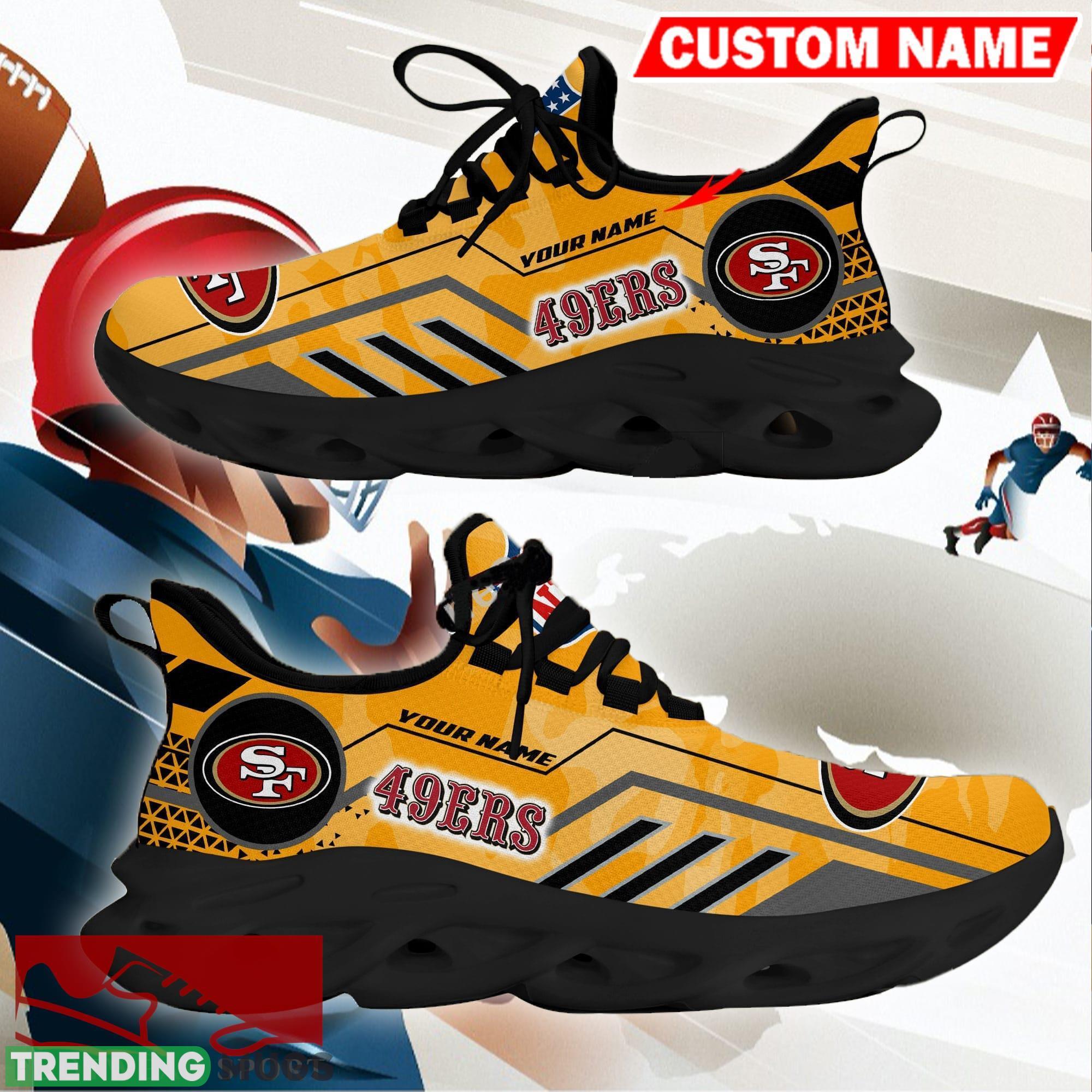 San Francisco 49ers NFL Logo Running Sneakers Camo Yellow Max Soul Shoes Personalized information: