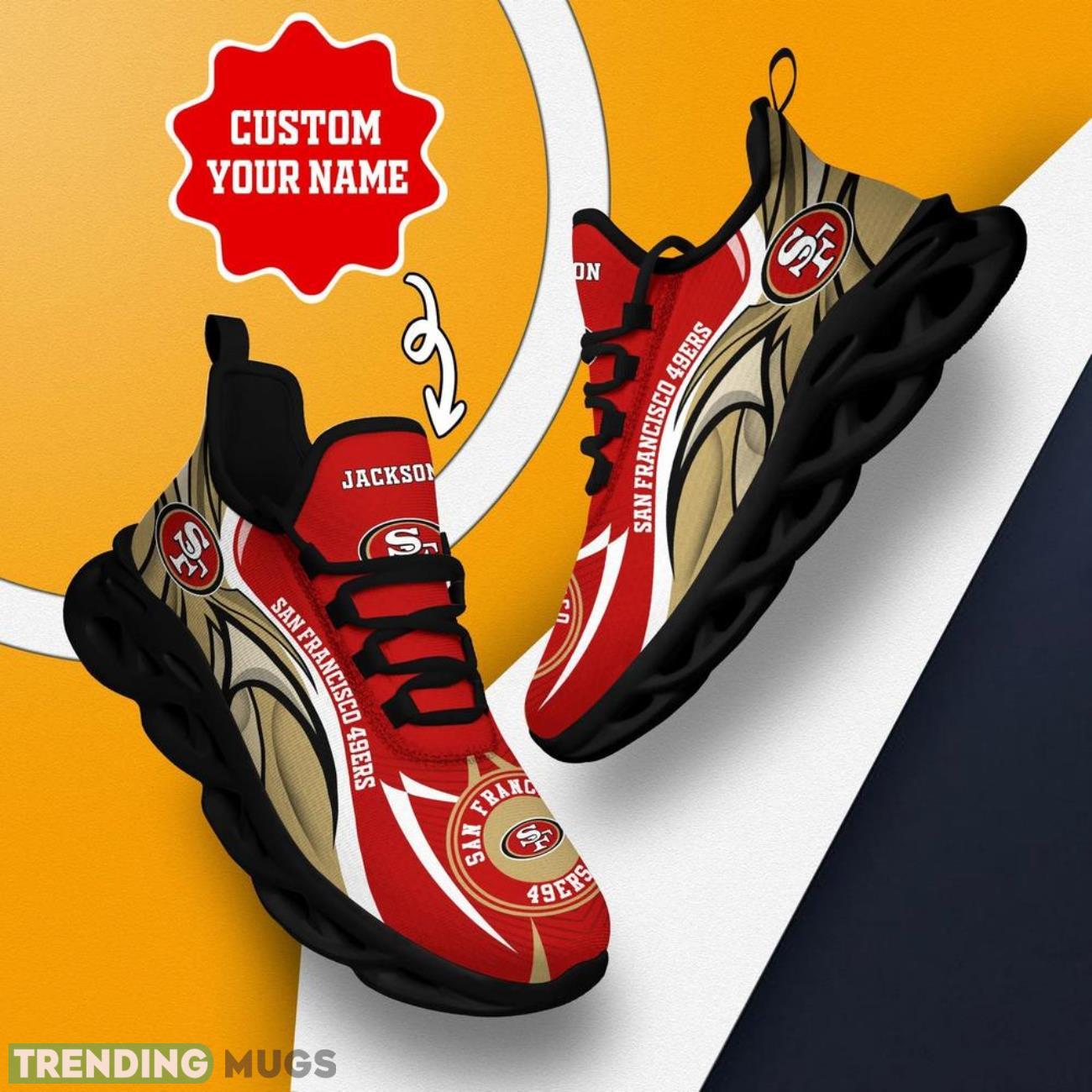 Step up your style game with these San Francisco 49ers NFL Max Soul Shoes! Designed for die-hard fans like yourself, these custom name sneakers are a hot trending item that will make heads turn wherever you go.