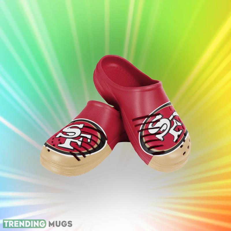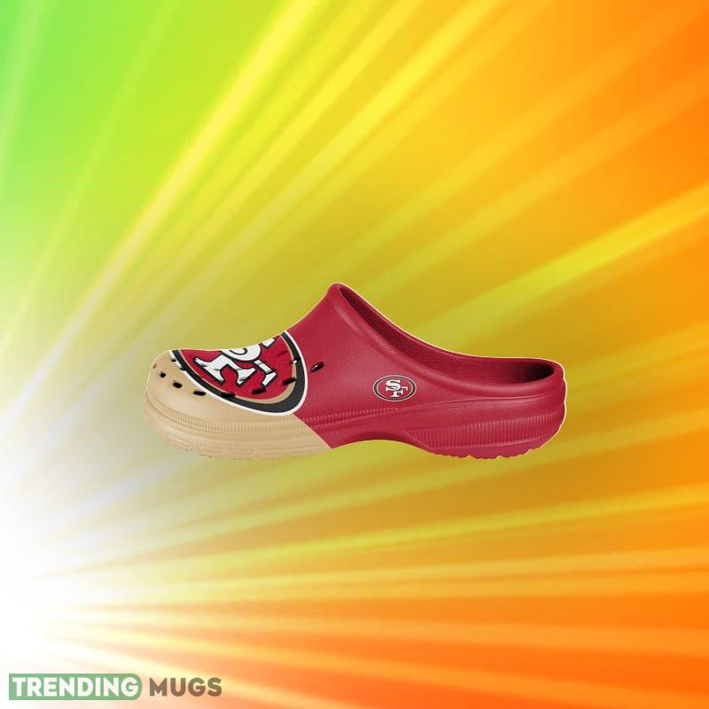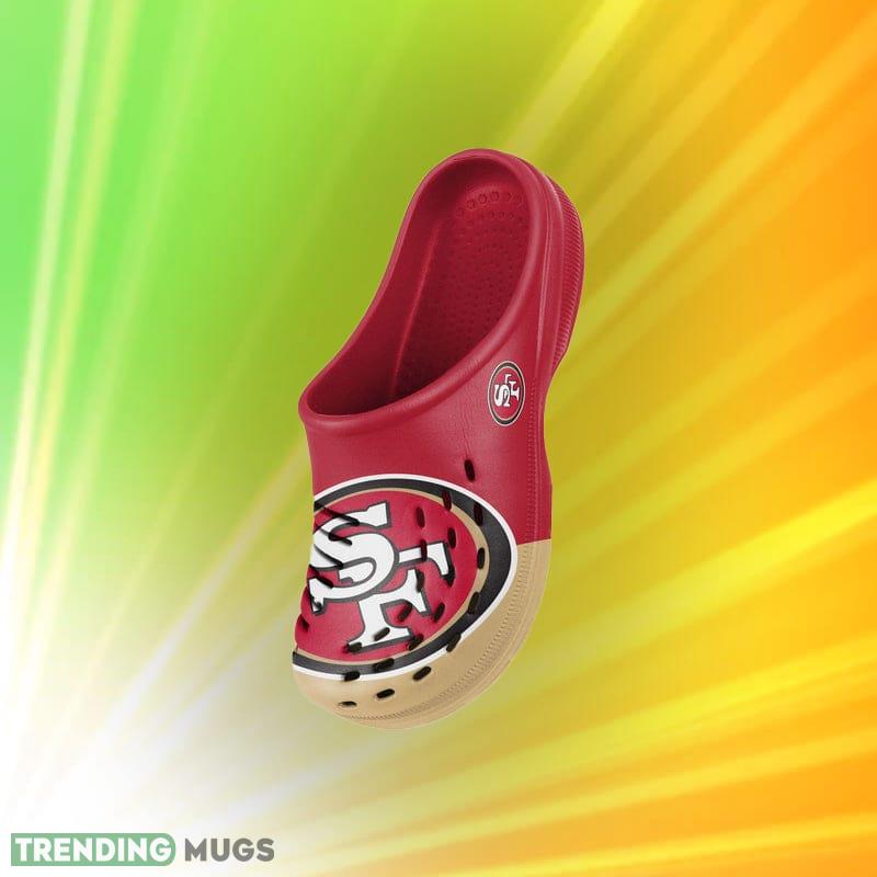 Calling all San Francisco 49ers fans! Make a bold statement with the San Francisco 49ers NFL Men and Women Colorblock Big Logo Clog Shoes. These shoes are the perfect way to show off your team spirit while also staying comfortable.