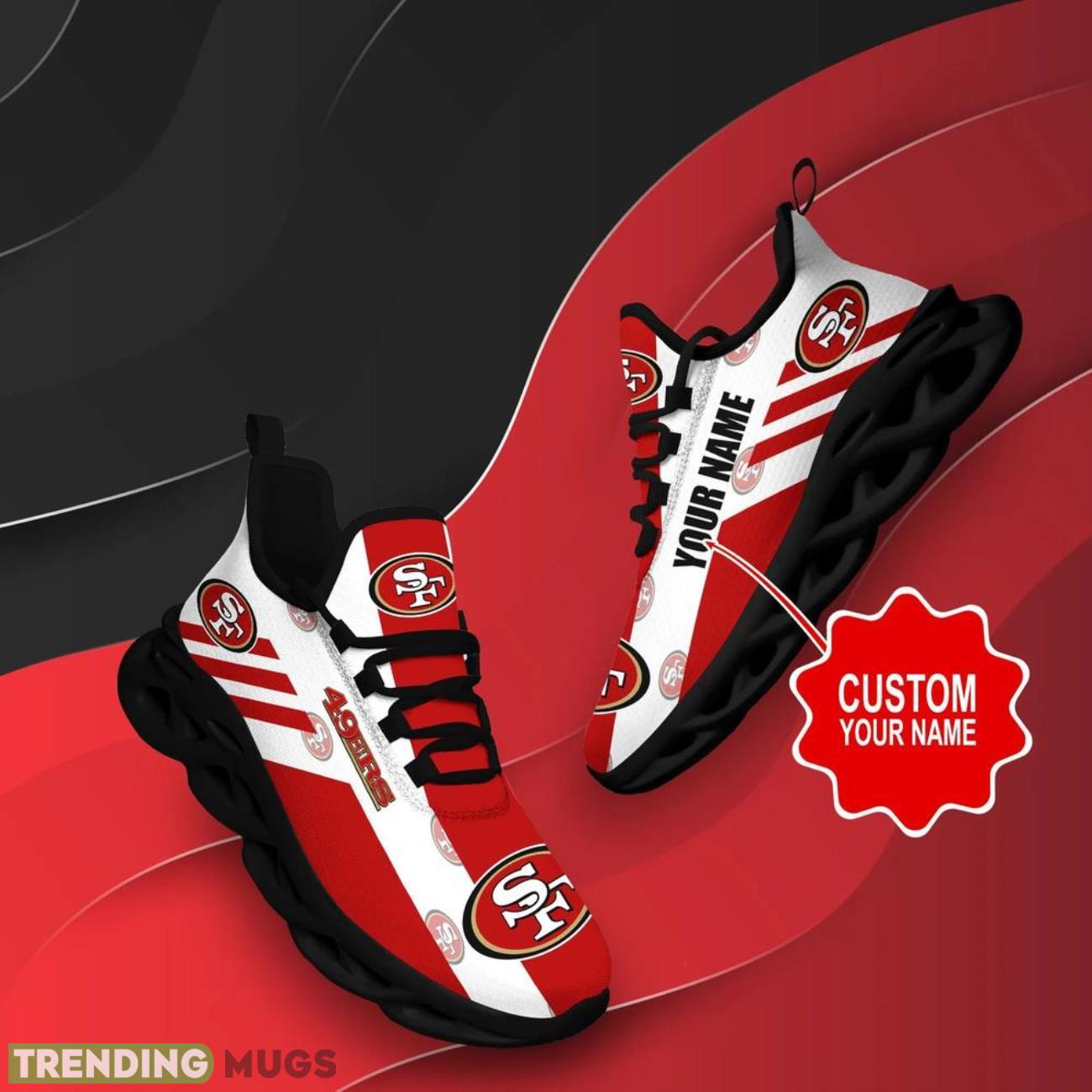 Elevate your game day attire with our San Francisco 49ers NFL Sneakers Max Soul Shoes! These custom name personalized gifts are the perfect way to show off your team pride in style. Made with high-quality materials and featuring the iconic 49ers logo, these sneakers are sure to turn heads wherever you go. Whether you’re heading to the game or just running errands around town, these shoes are a must-have for any die-hard 49ers fan. Add your own personal touch by customizing them with your name or favorite player’s name. Step up your shoe game and represent the Niners in style with these exclusive sneakers!