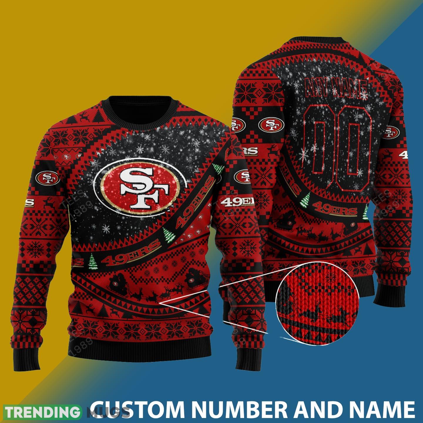 But that’s not all – this sweater is customizable with your own name and number. Imagine wearing a sweater that not only represents your favorite team but also proudly displays your own personal touch. It’s the ultimate way to show off your individuality and loyalty to the San Francisco 49ers.