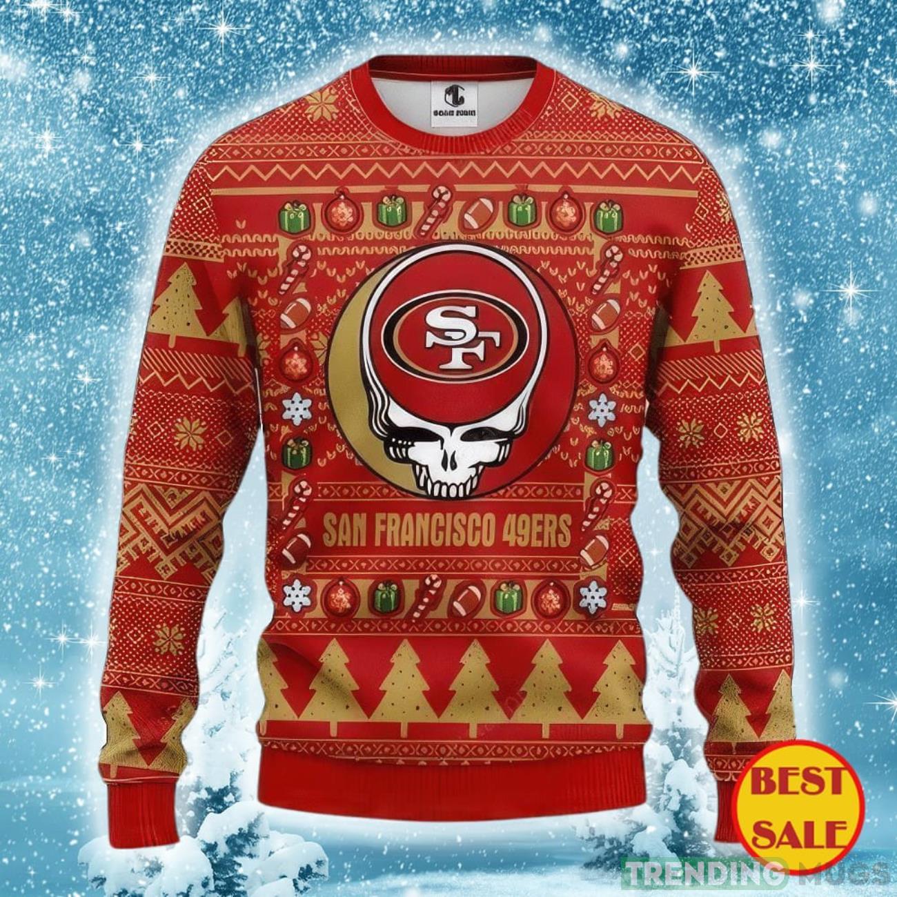 Crafted with utmost attention to detail, our sweater features a unique design that showcases the iconic San Francisco 49ers logo alongside a captivating skull motif. The intricate patterns and vibrant colors make this sweater a true standout, ensuring you’ll be the center of attention at any holiday gathering.