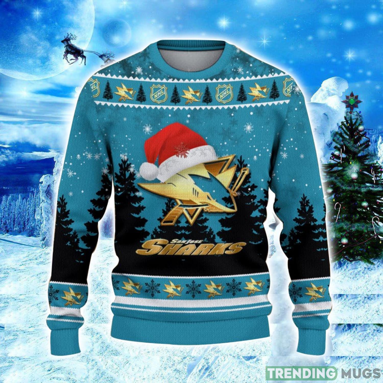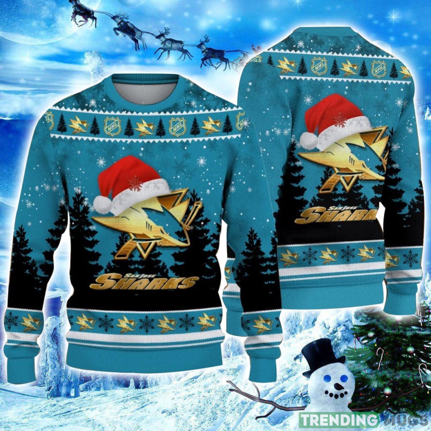 San Jose Sharks Logo Wearing Santa Hat Christmas Gift Ugly Christmas Sweater Christmas Gift Ideas Product Photo 1