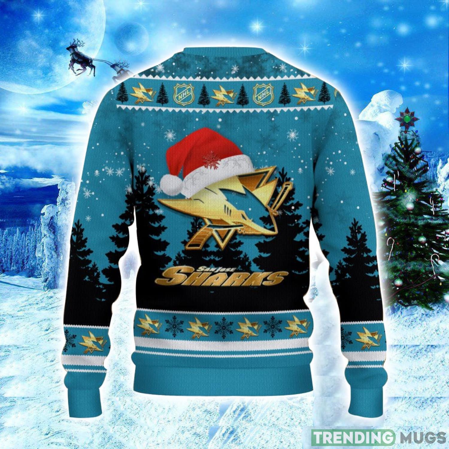 San Jose Sharks Logo Wearing Santa Hat Christmas Gift Ugly Christmas Sweater Christmas Gift Ideas Product Photo 2