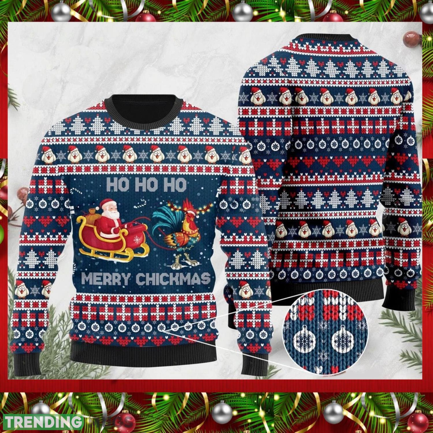 Santa Claus And Chicken Ho Ho Ho Mery Chickmas All Over Print Christmas Sweater Informations: