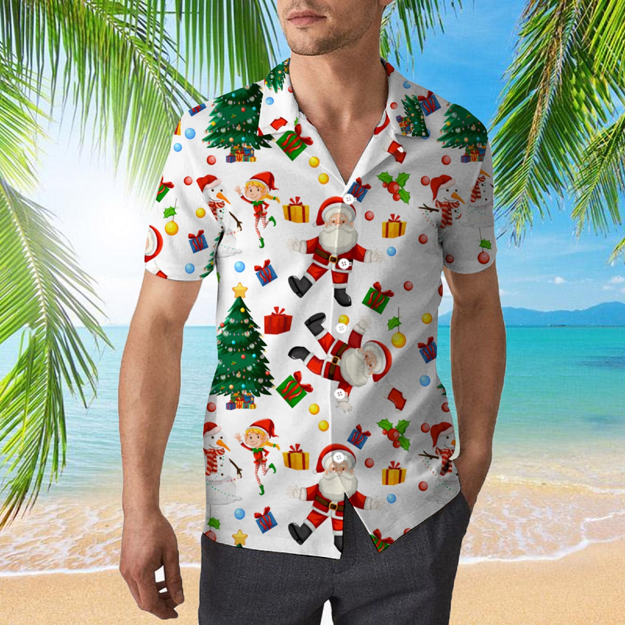 Some of the Santa Claus and Snowman Christmas Unisex 3D Hawaiian Shirt Palm Gift For Men And Women Holiday photos
