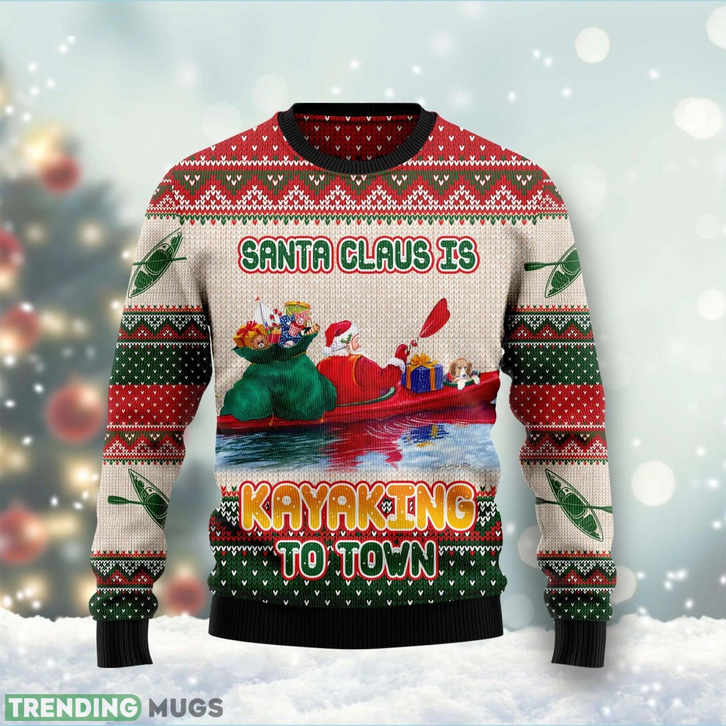 Santa Claus Is Kayaking To Town Ugly Christmas Sweater Gift For Men Women Informations: