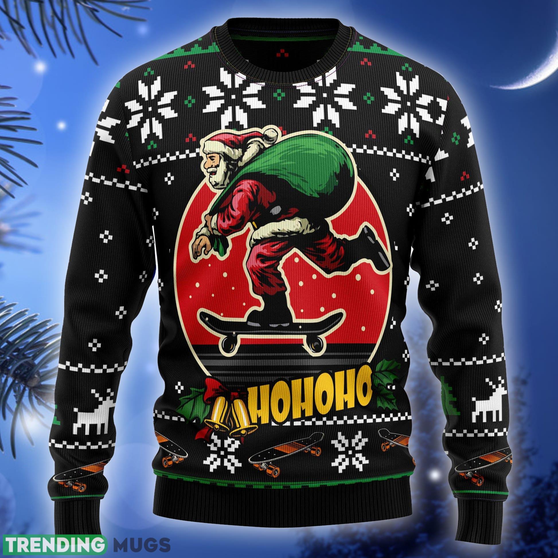 Santa Claus Skateboard Ugly Christmas Sweater Thankgiving Gift Men Women
