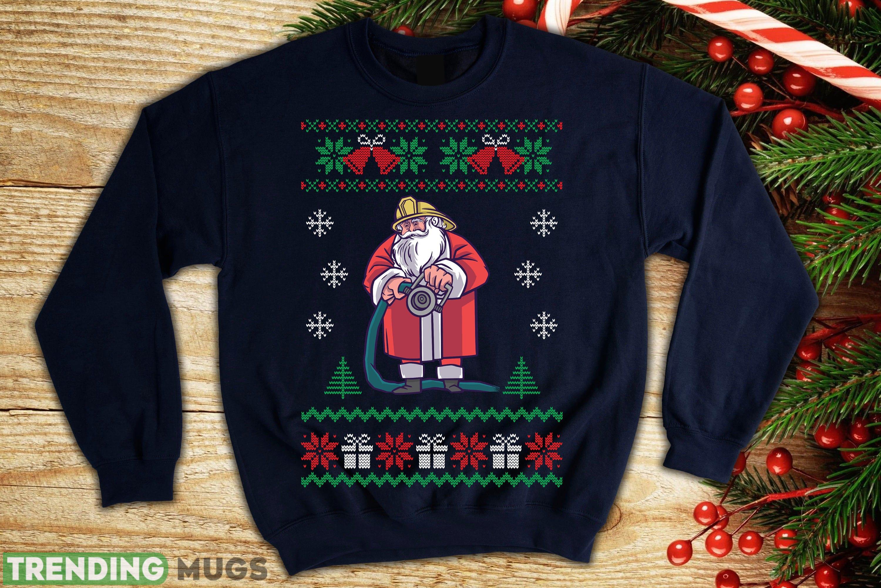santa firefighter ugly sweatshirt santa fireman sweatshirt For Christmas Details