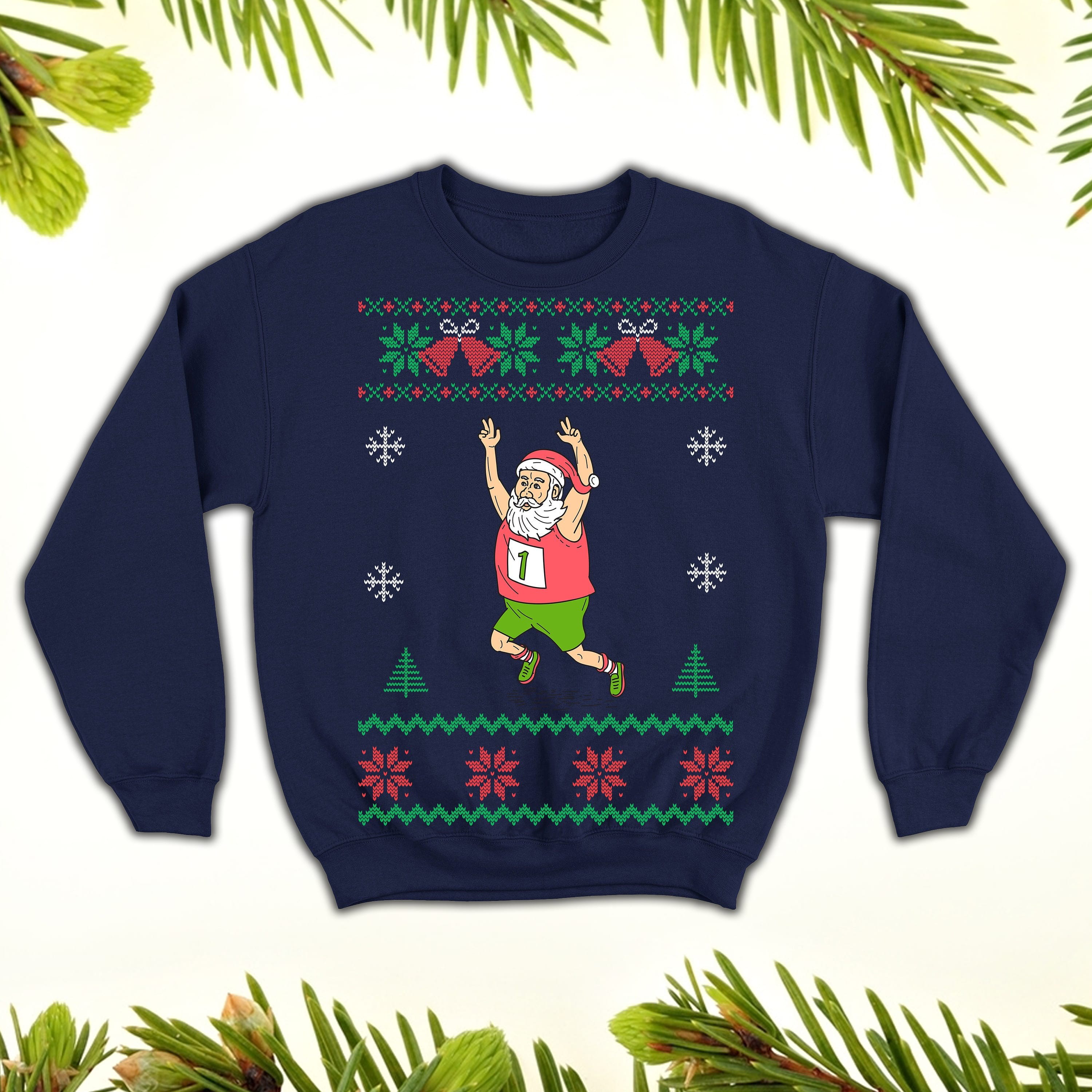 Some of the santa marathon ugly sweatshirt santa running funny santa runner sweatshirt for men and women santa jogging shirt photos