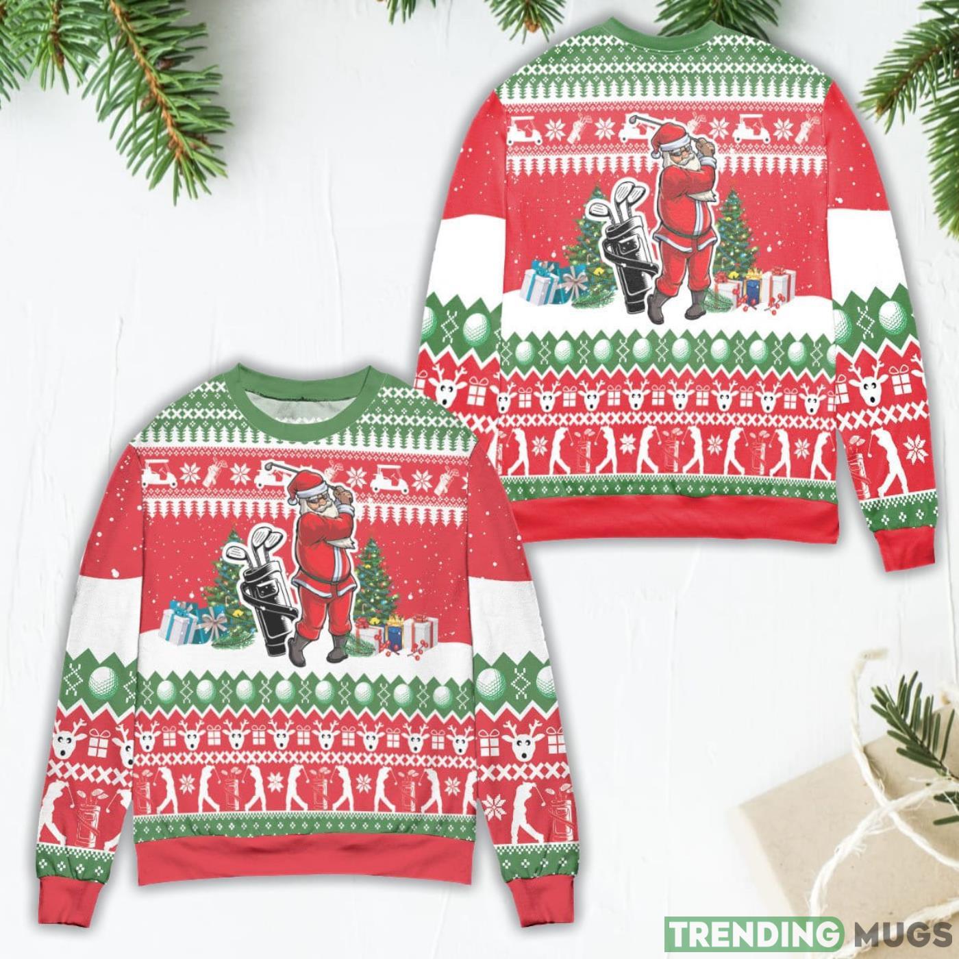 Santa Playing Golf Reindeer Pattern Ugly Christmas Sweater Product Photo 1