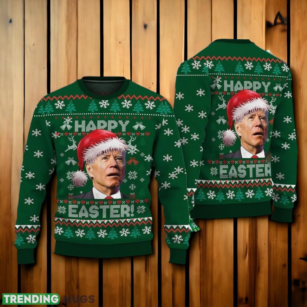 Featuring a playful design of Santa Claus dressed as the President, surrounded by cheerful Easter eggs, this sweater is a delightful blend of two beloved holidays. The vibrant colors and intricate detailing bring this quirky design to life, ensuring you’ll stand out from the crowd.