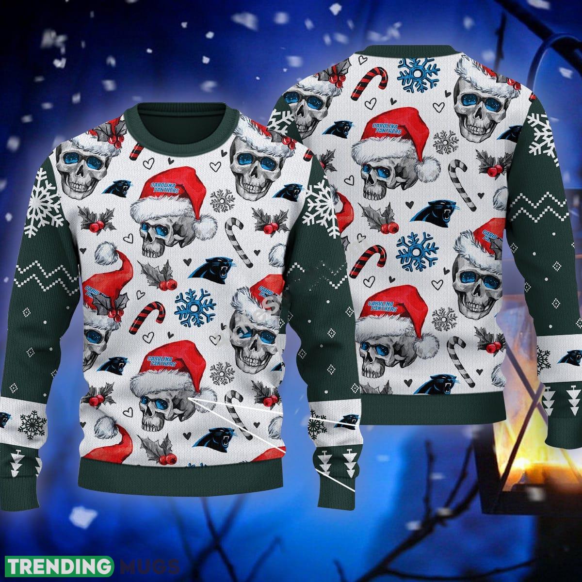 Santa Skull Carolina Panthers Candy Cane Ugly Sweater Green Gift For Christmas Informations: