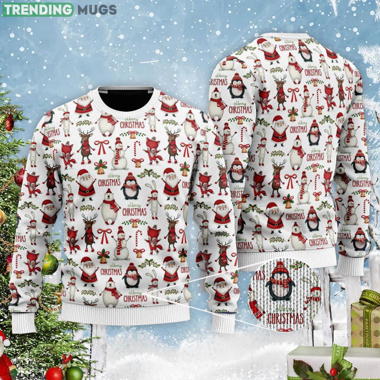 Santa Snowman And Frined Christmas Pattern Ugly Christmas Sweater Informations:
