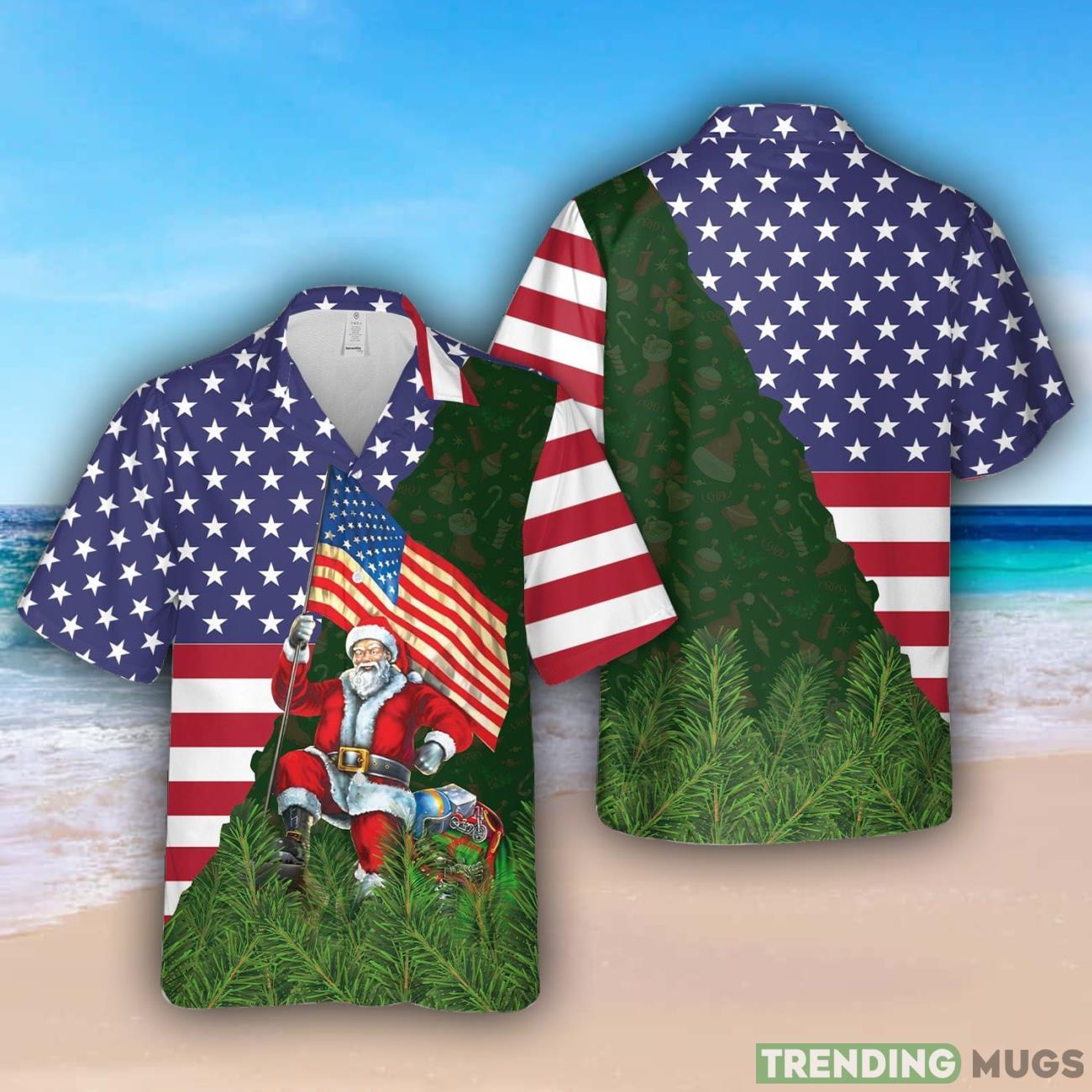 Santa Usa Flag Christmas Aloha Hawaiian Shirt Beach Gift Short Sleeve Shirt Hawaiian Shirt