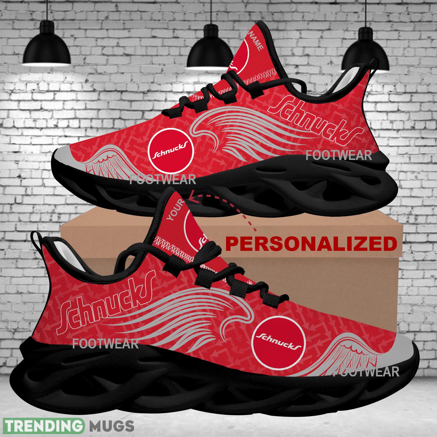Elevate your footwear game with our Schnucks Brand Logo Wings Pattern Max Soul Shoes Personalized Fashion-Forward Running Sneaker. These stylish and comfortable sneakers are perfect for running, walking, or just adding a dash of flair to your everyday outfit. The unique wings pattern and personalized design make these shoes a must-have for any fashion-forward individual. Step out in style and turn heads with these one-of-a-kind sneakers that are as comfortable as they are eye-catching. Upgrade your shoe collection with our Schnucks Brand Logo Wings Pattern Max Soul Shoes today!